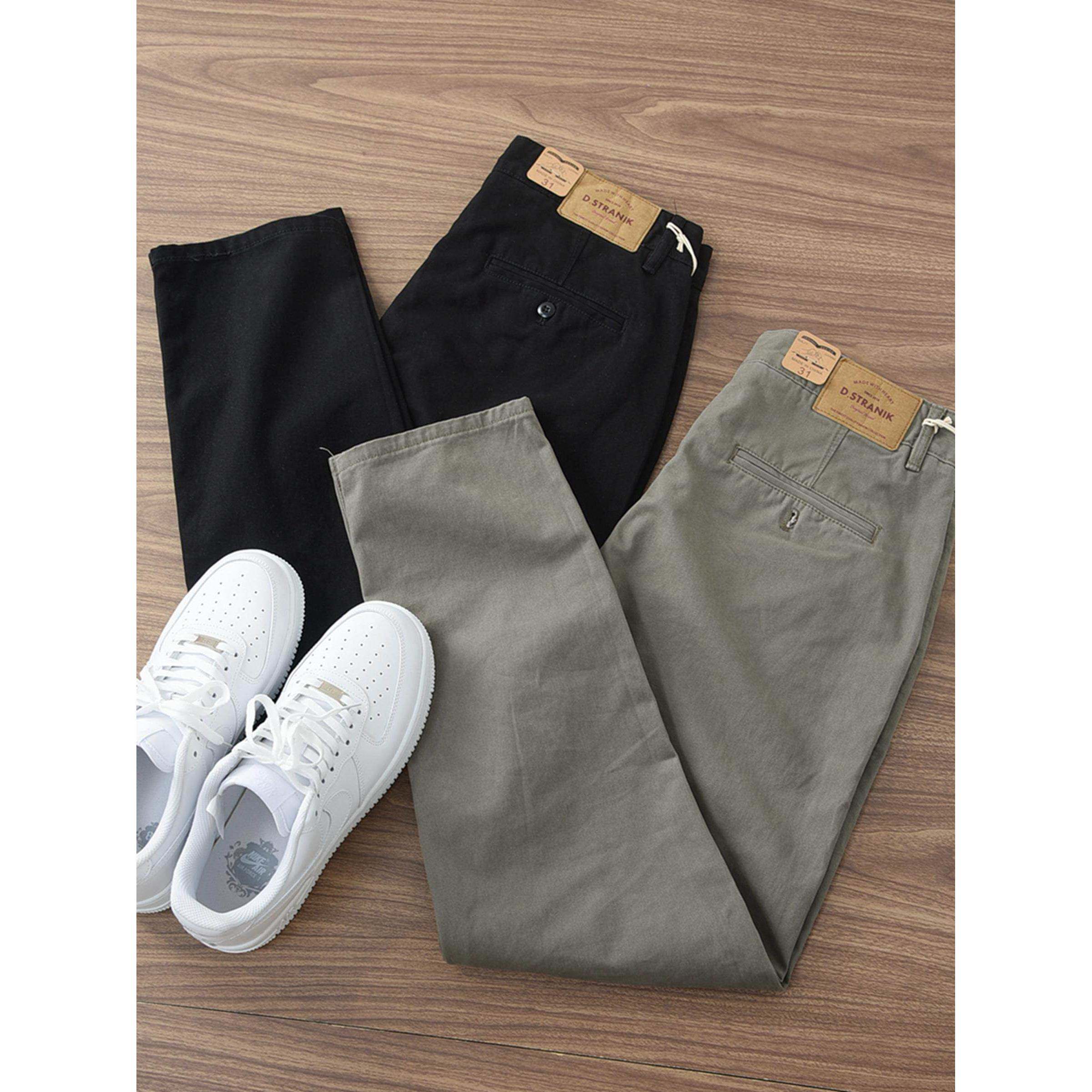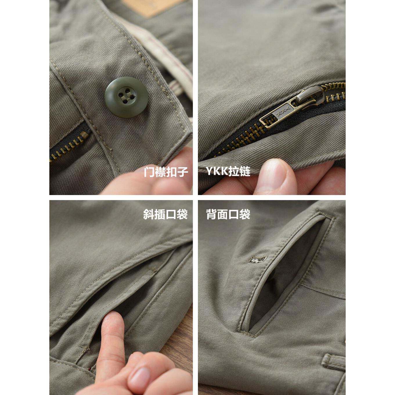 纯棉裤 覆古宽松直筒长裤 子男款 男工装 重磅厚实斜纹棉休闲裤 春秋季