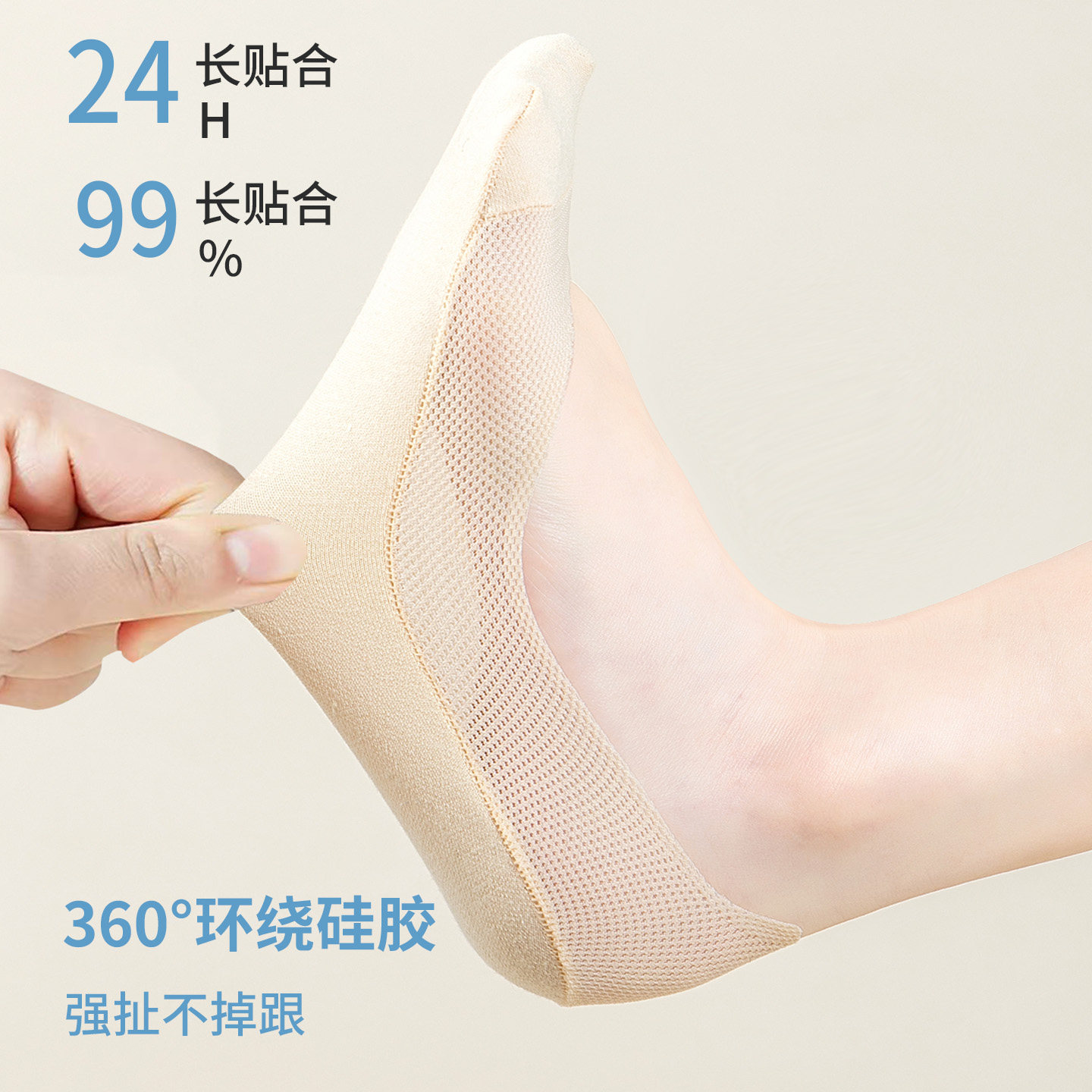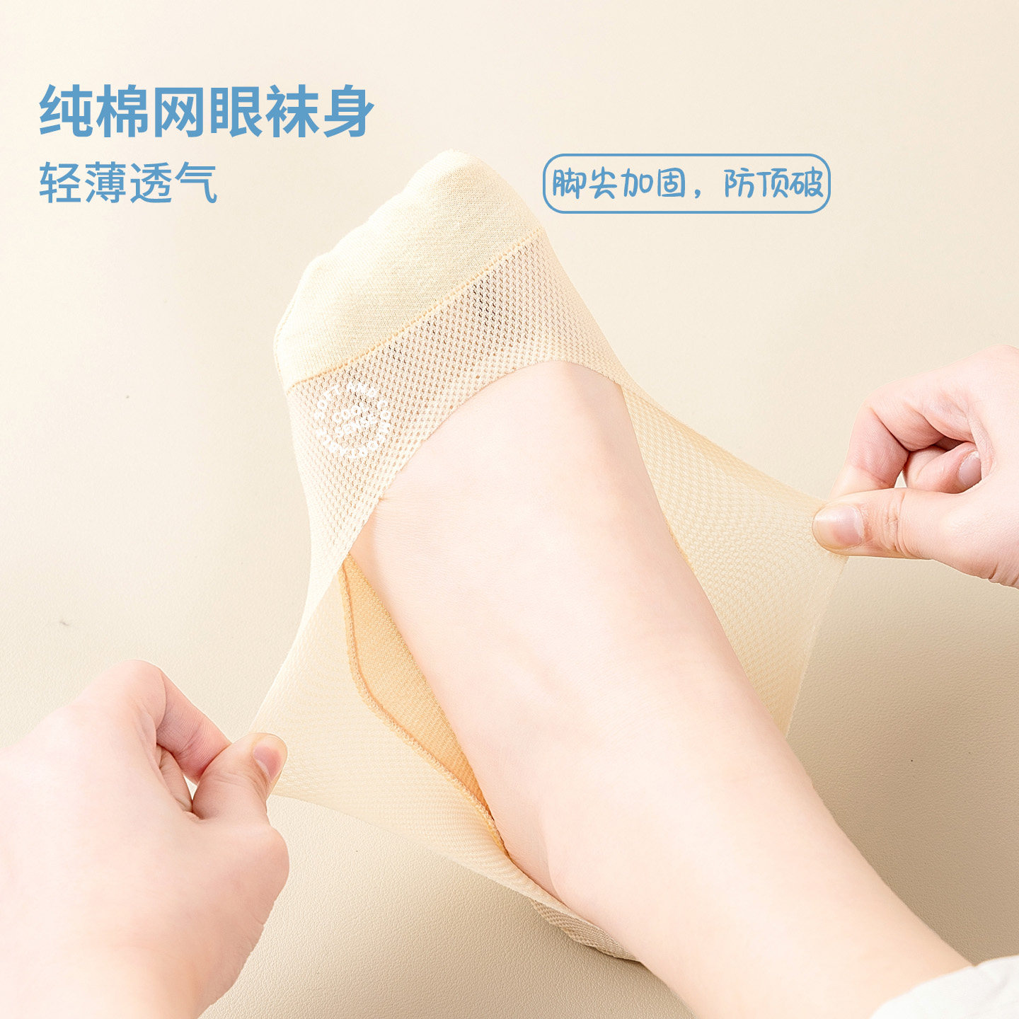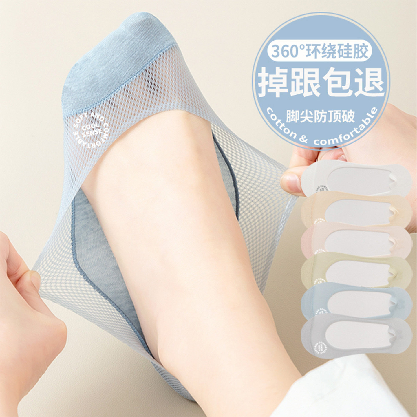 纯棉船袜女夏季 网眼抗菌防臭低帮浅口隐形硅胶防滑不掉跟袜子 薄款
