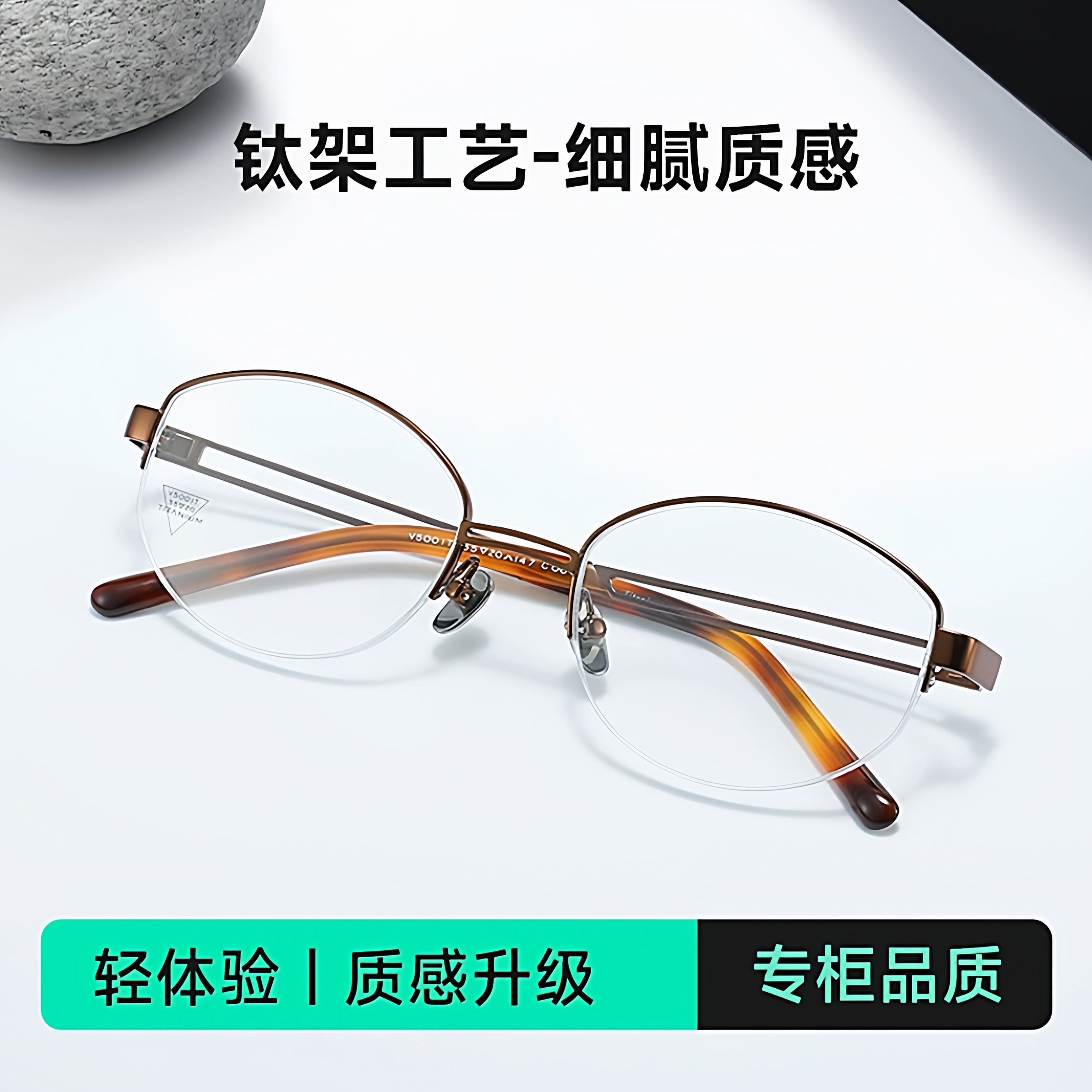 backbone老钱近视眼镜架女椭圆超轻半框配度数防蓝光纯钛镜框素颜