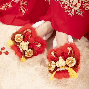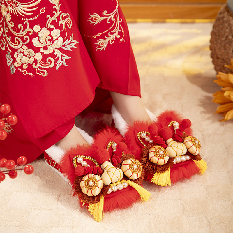 居家防滑可爱亲子棉鞋 包跟冬季 女款 chedoir猜岛防水红苹果棉拖鞋