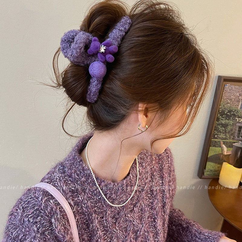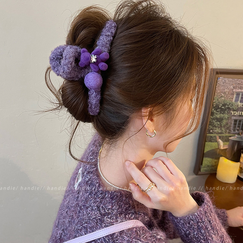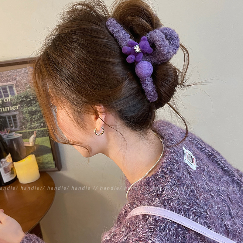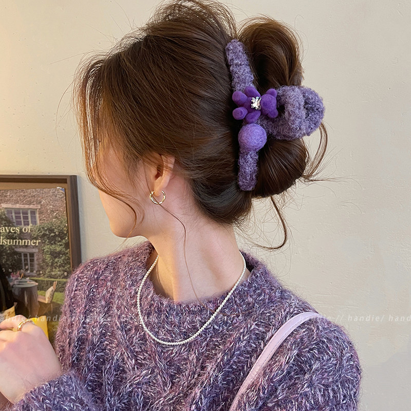 甜美小熊圆球毛绒抓夹女可爱高级感发夹2025新款 鲨鱼夹巨好看发饰