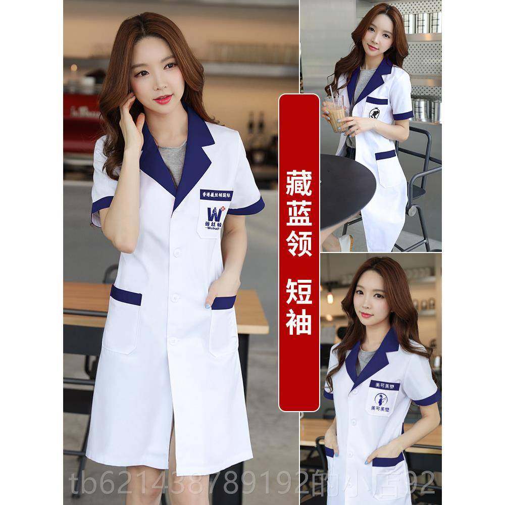 工夏季 女医生服短袖 美院纹绣师微整皮肤容管理 白长大褂袖 高档韩版