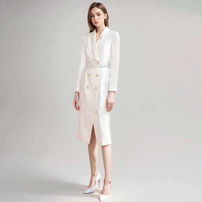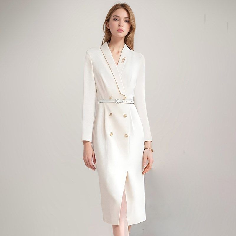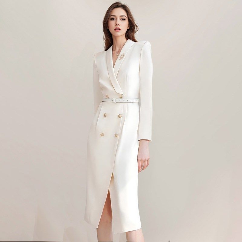 礼服西装 职业白色连衣裙女气质主持人演讲正装 裙套裙 高级长款 新款