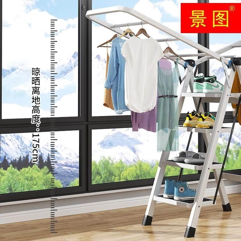 置地梯子晾衣架多功能两用免安装 可折叠三四五步踏板梯子晾衣架梯