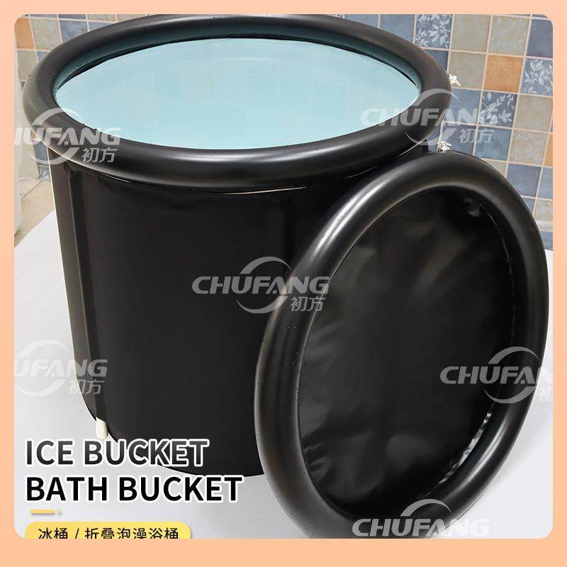۶黑色折叠泡澡桶加厚大号pvc充气浴缸家用折叠洗澡浴桶冰浴桶冰
