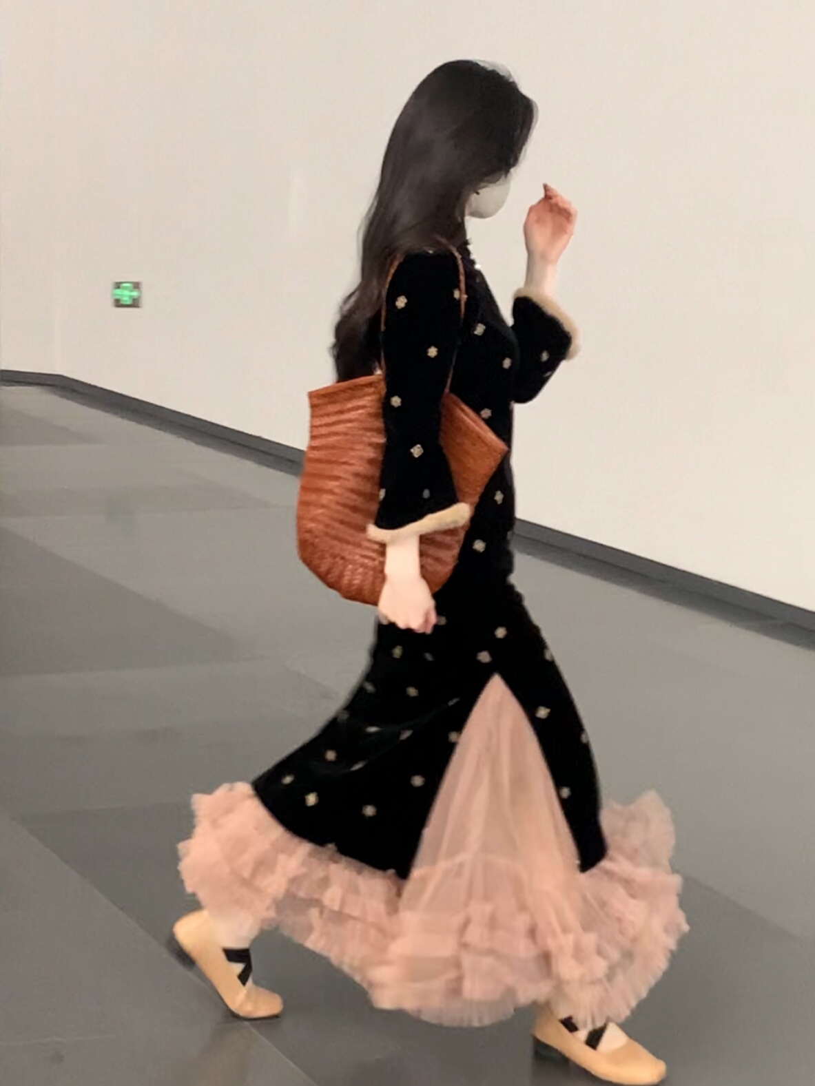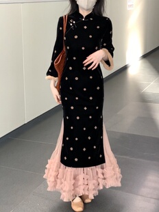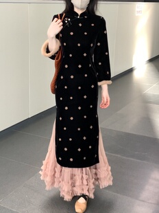 流苏长裙 2025秋冬新款 新中式 气质国风加绒加厚改良旗袍连衣裙女装