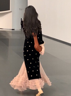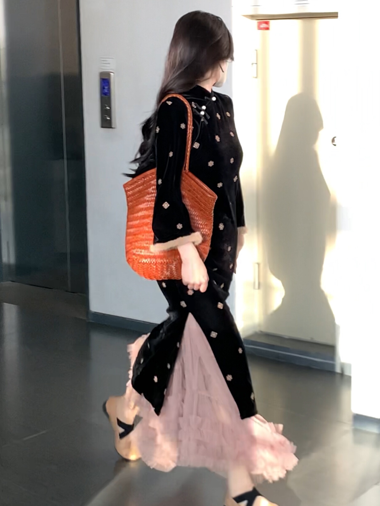 新中式 镜水浮金 扭结丝绒旗袍裙低开叉国风长裙 collection APOZi