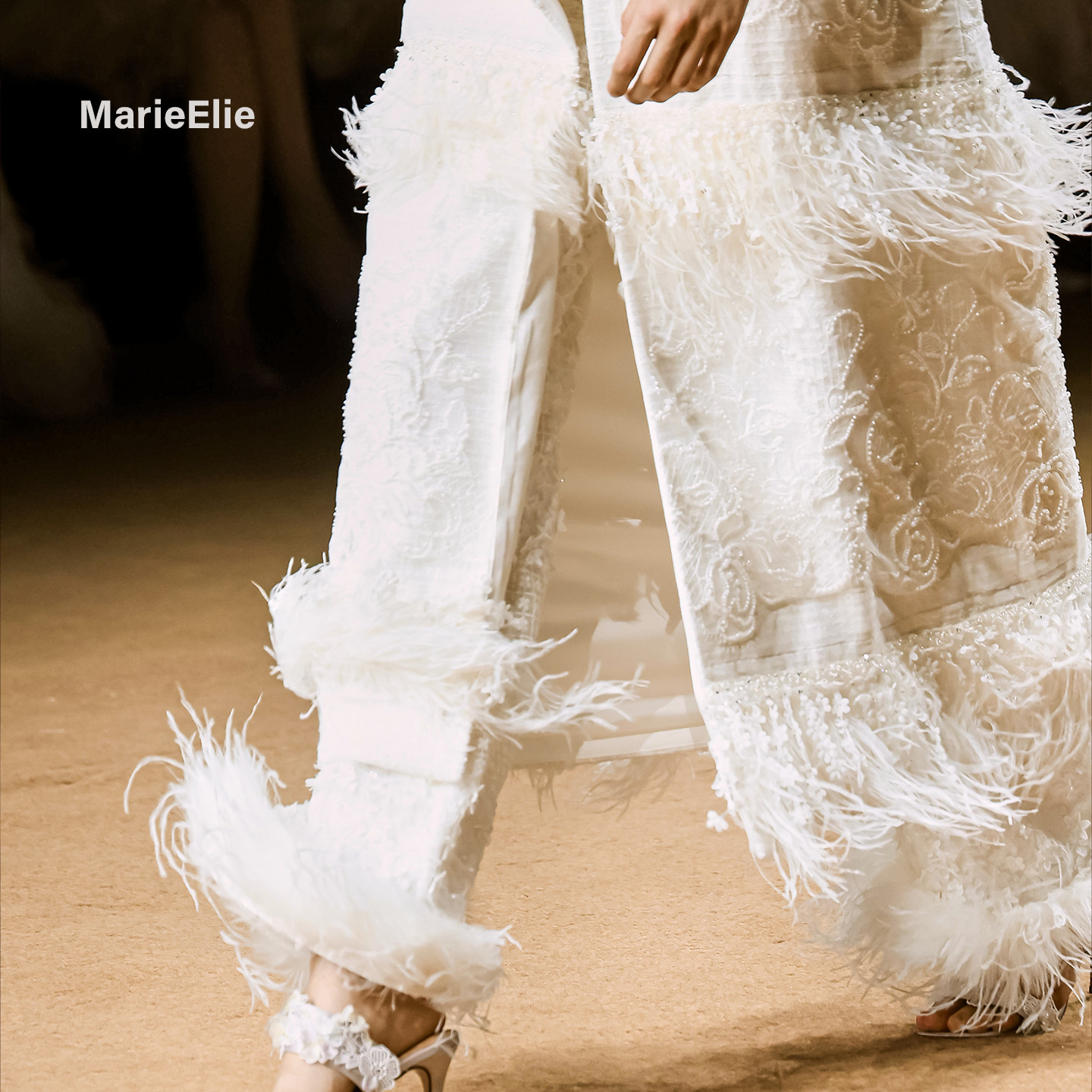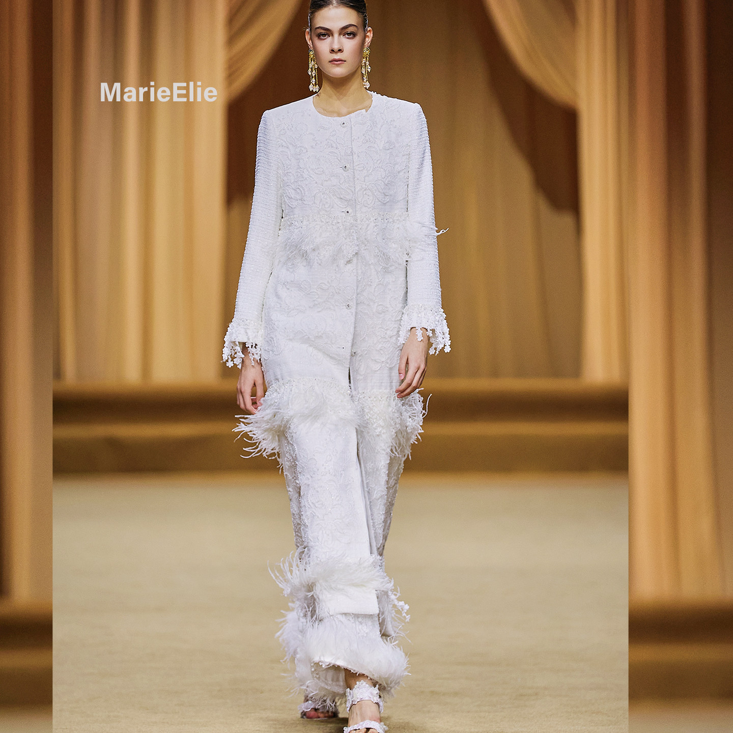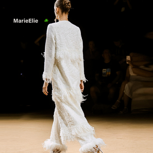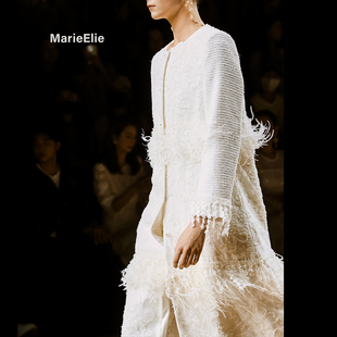 气质连体衣大衣 女荷叶边流苏长袖 Marie Elie浪漫风白色羽毛连体裤