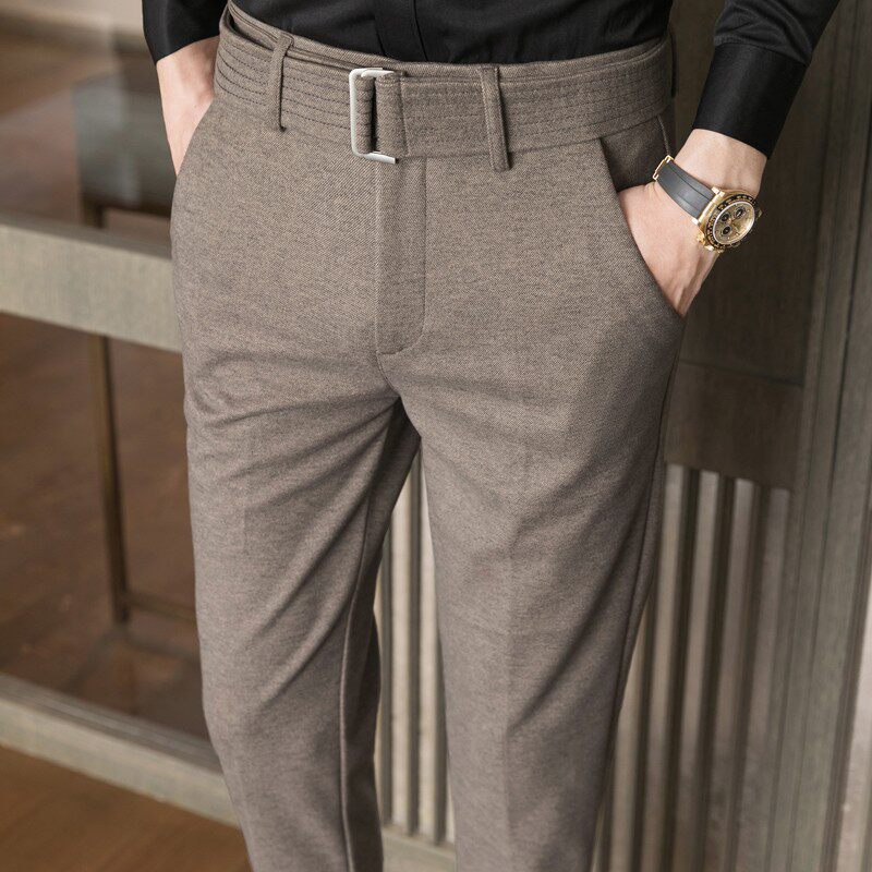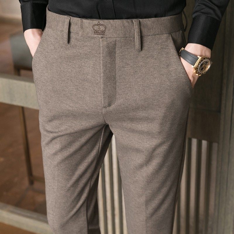 9分8分西裤 冬季 修身 小脚弹力毛呢八分西装 矮个子九分裤 休闲裤 男士