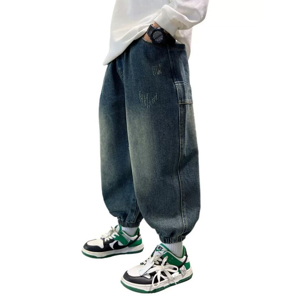 加绒宽松直筒阔腿裤 女童春秋牛仔裤 洋气冬装 中大儿童韩版 2025新款