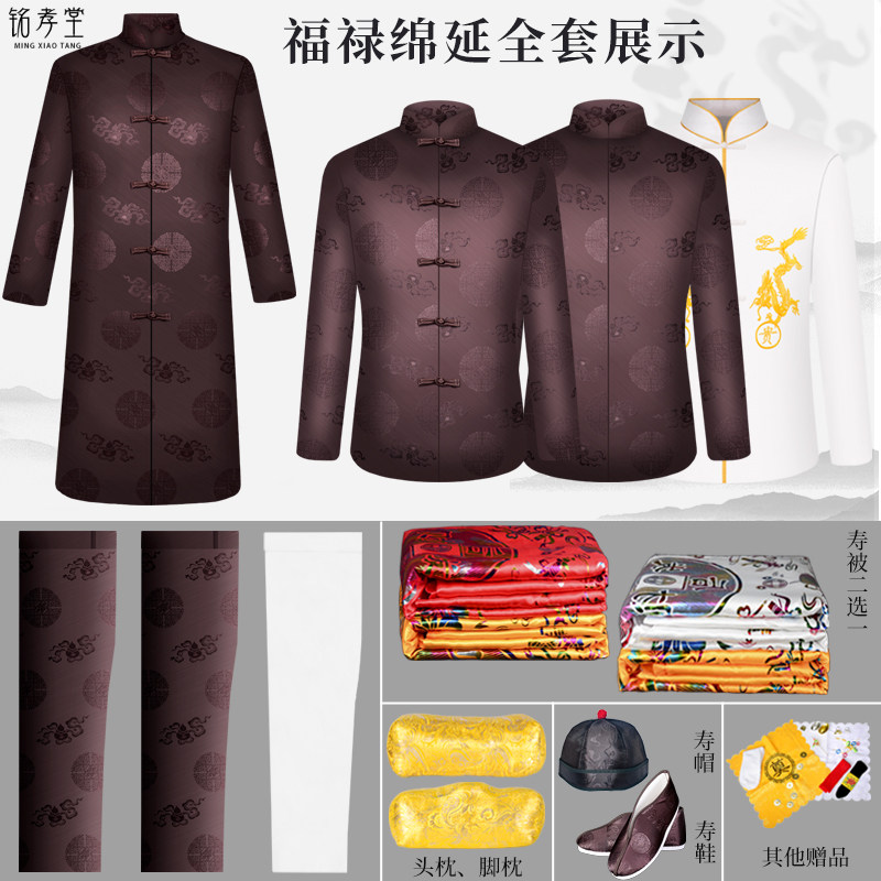包邮 速发寿衣男全套老年寿终件服高档装 丝立领唐真七衣八件九件套