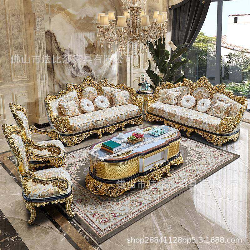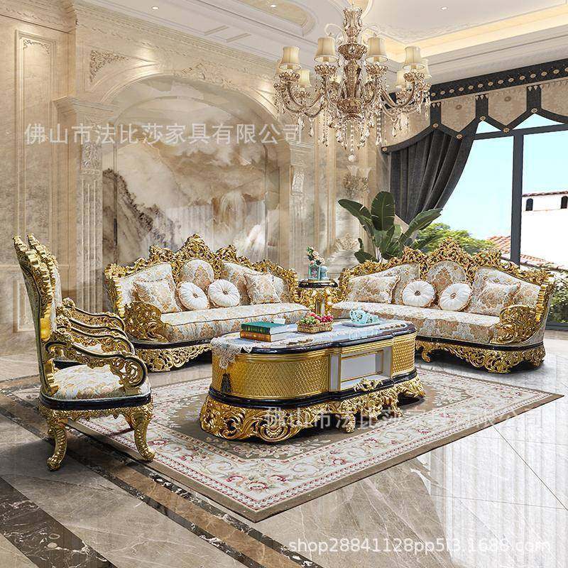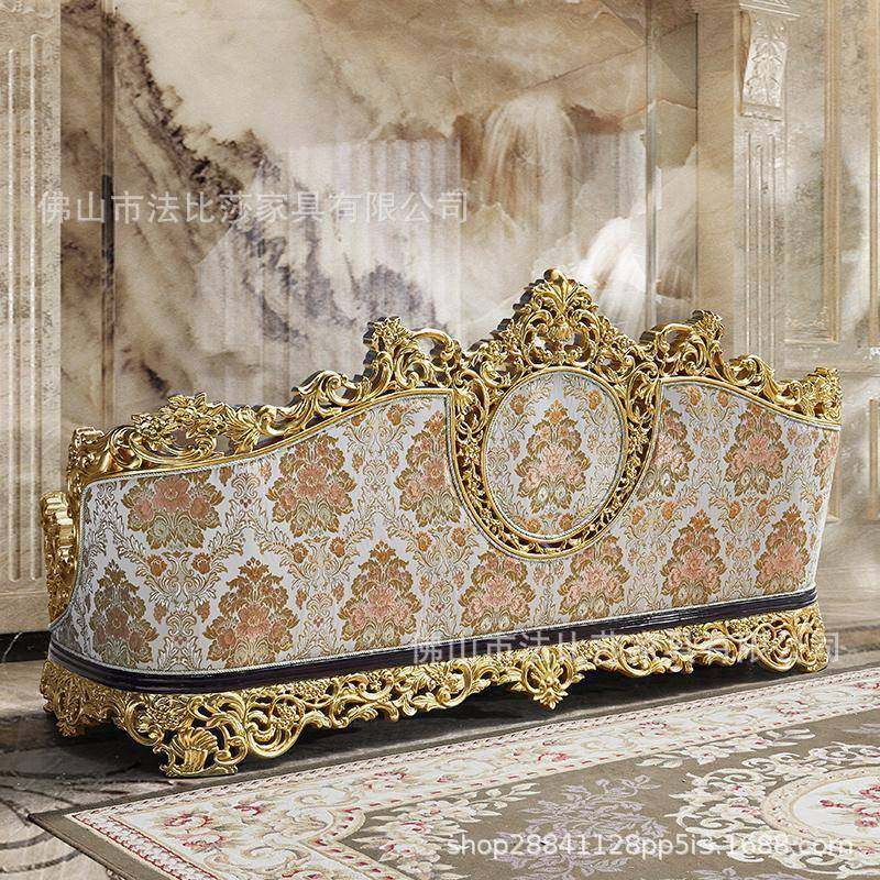 欧式 布艺沙发简欧皮布客厅贵妃大扶手带木头奢华实木组合沙发真皮