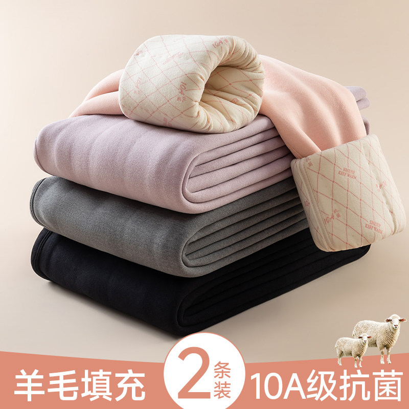 女士秋冬季 秋裤 加绒加厚校服神器棉裤 棉毛裤 大码 七色纺羊毛保暖裤