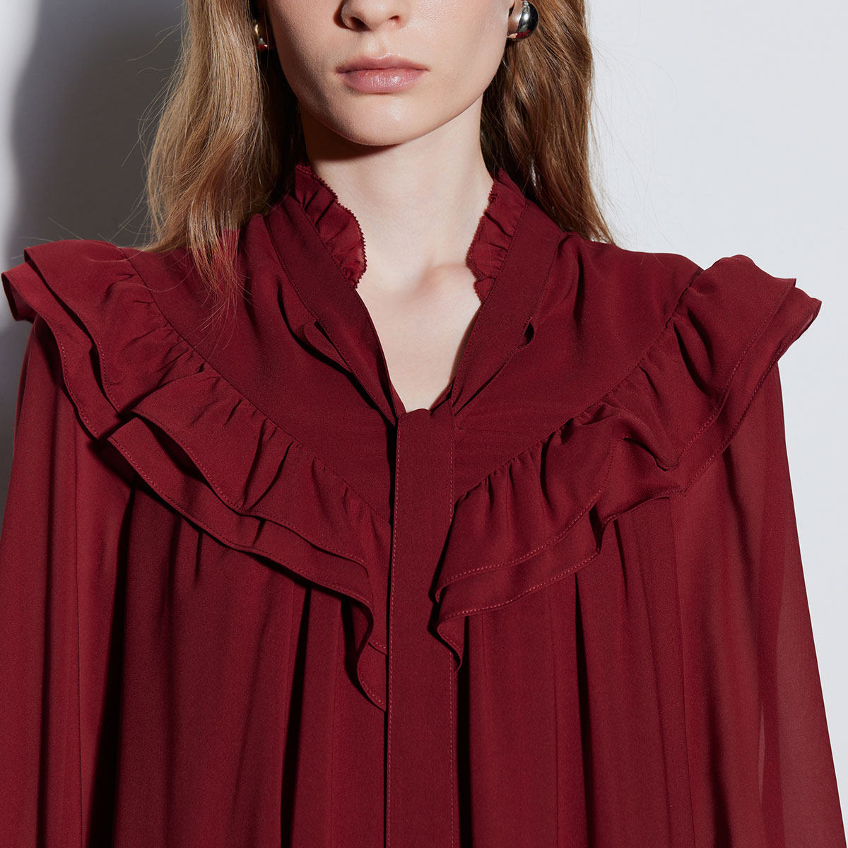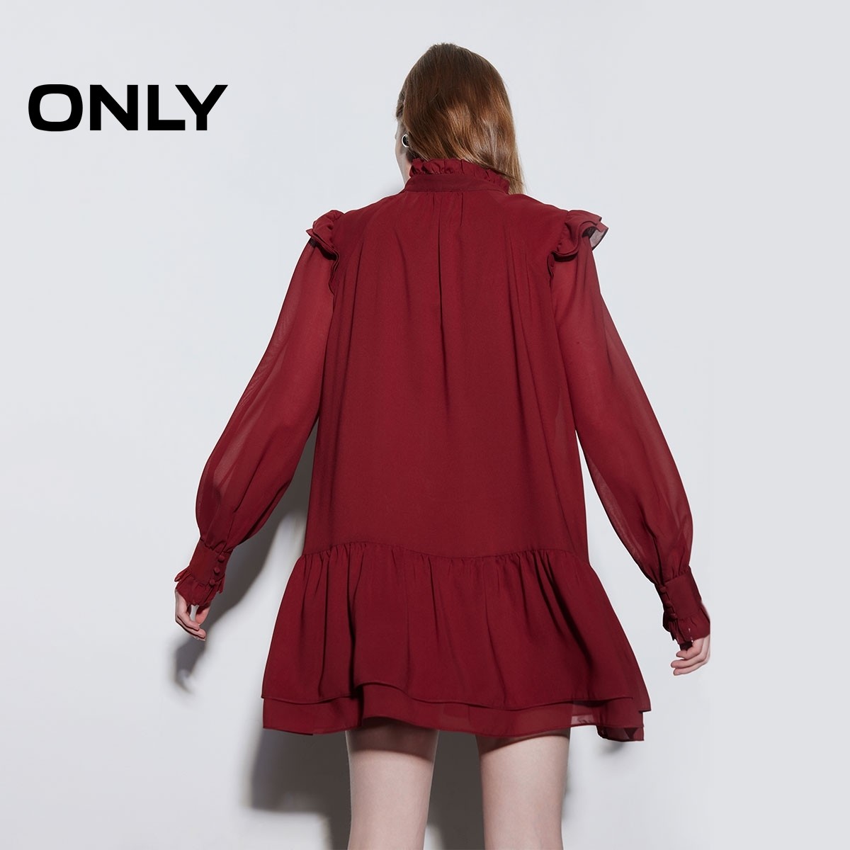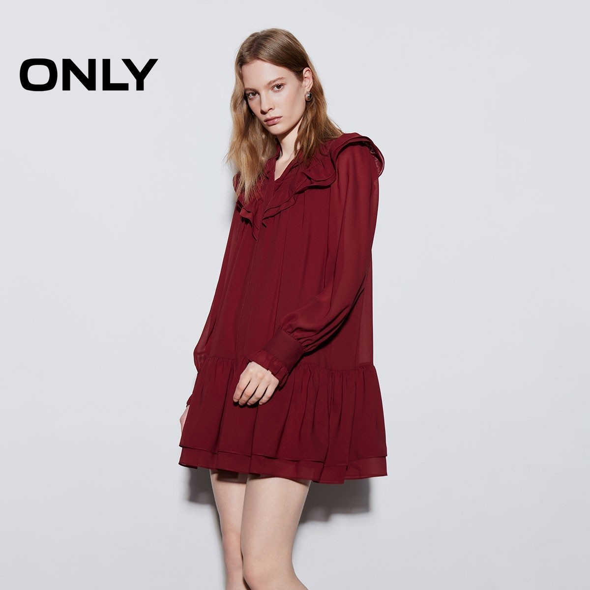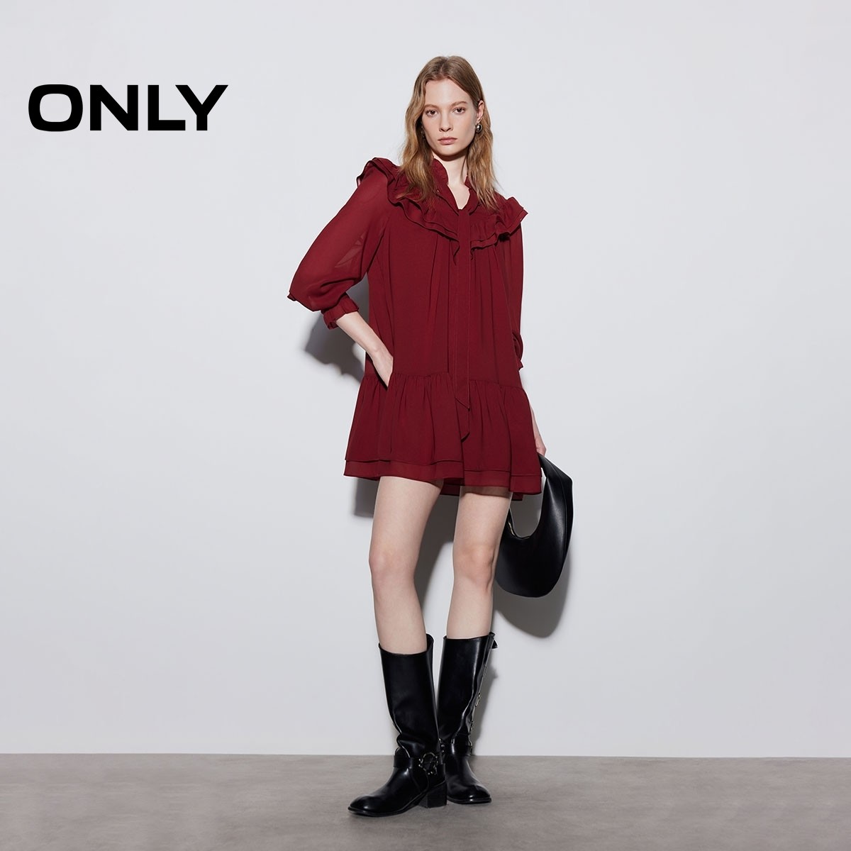 ONLY2026春季 约会飘带层叠荷叶边A字红色裙子短裙连衣裙女 新款
