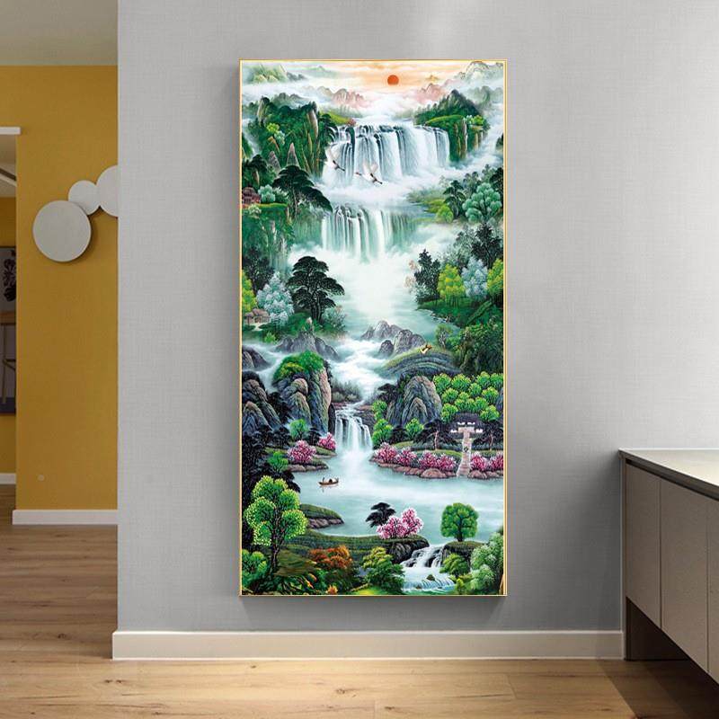 5d钻石画钻绣新款 户客厅入玄M5078关流水瀑布山水风景贴钻十字钻