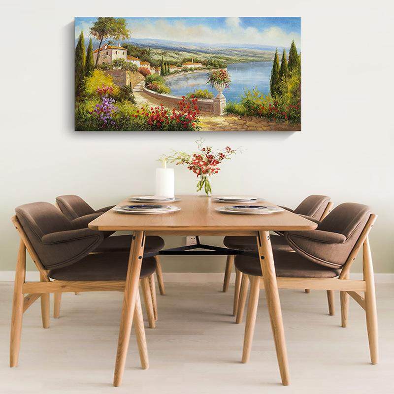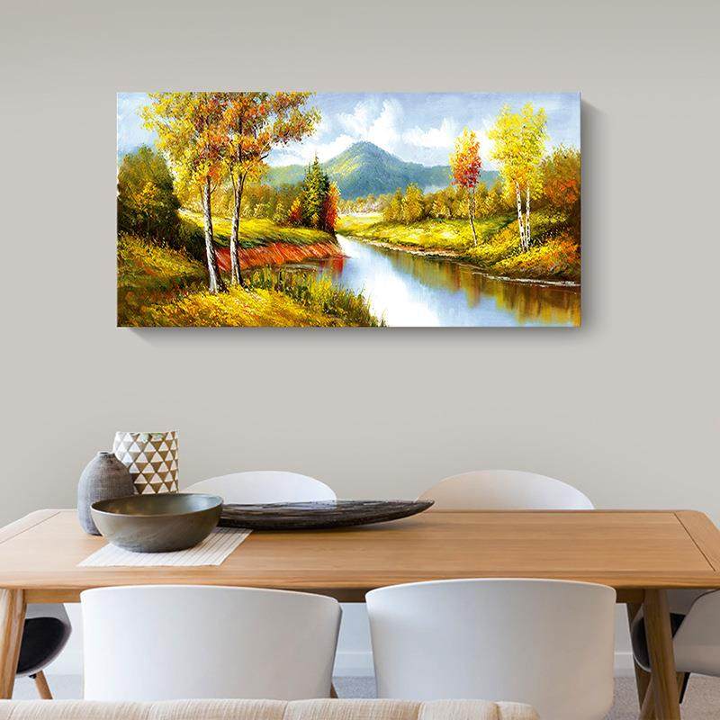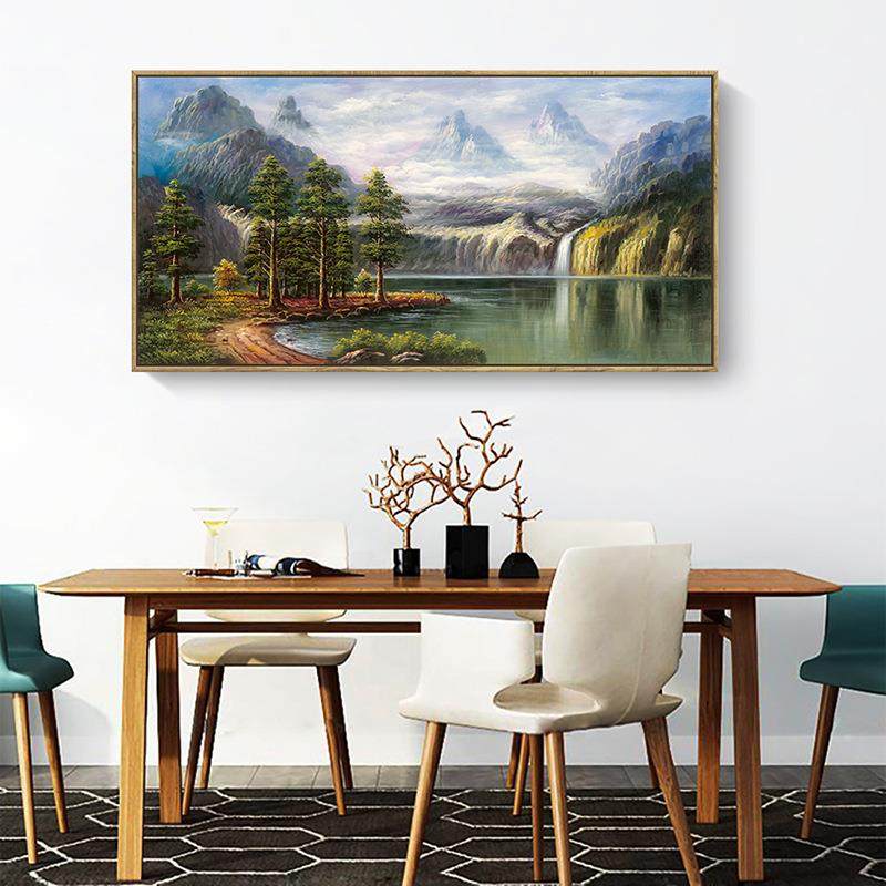 客厅装 饰画山水风景油画喷绘现代简约酒店民宿横幅床头有框无框画