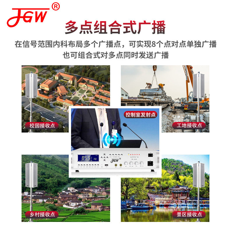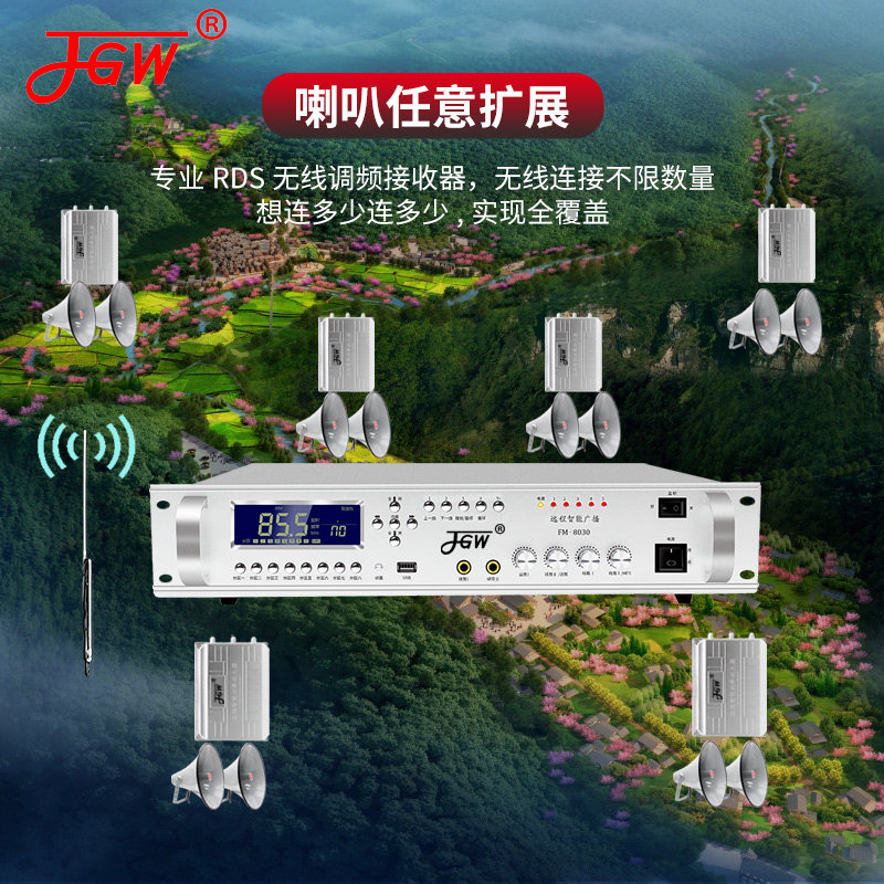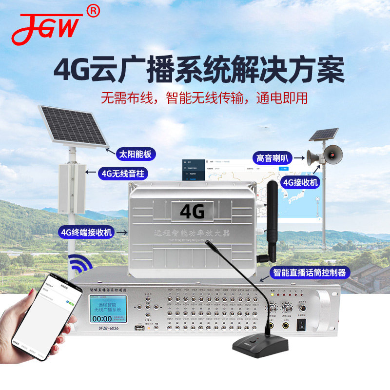 4G无线广播系统套装 农村号角高音喇叭调频发射机校园户外防水音柱