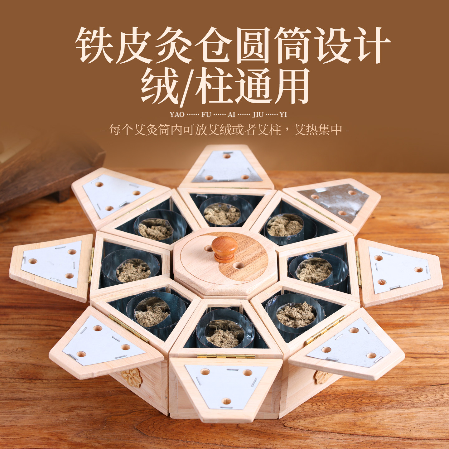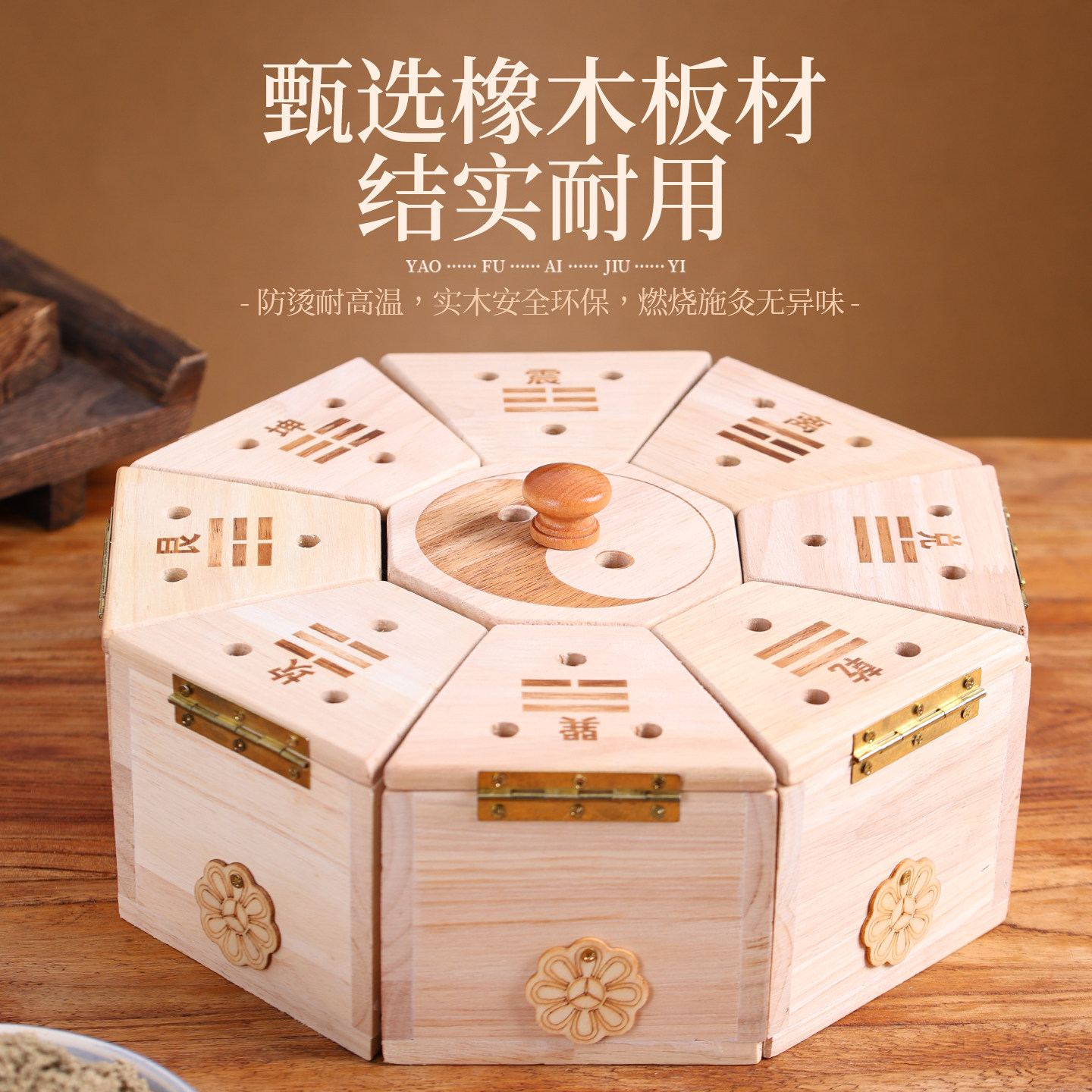 艾灸盒九宫八卦艾灸仪木质多面体中医专用按摩温熏调理器贴合腰腹