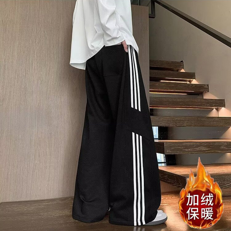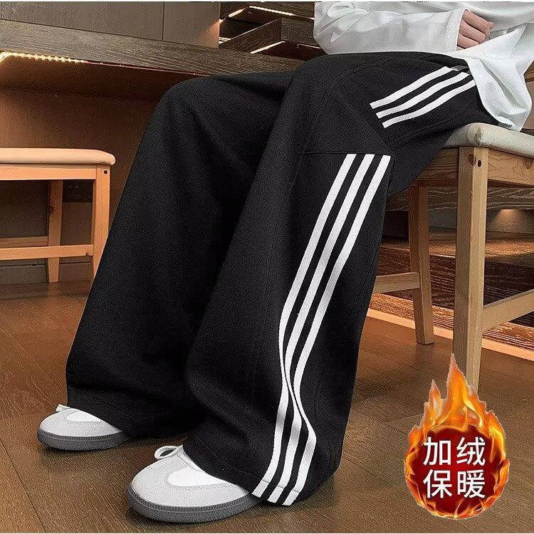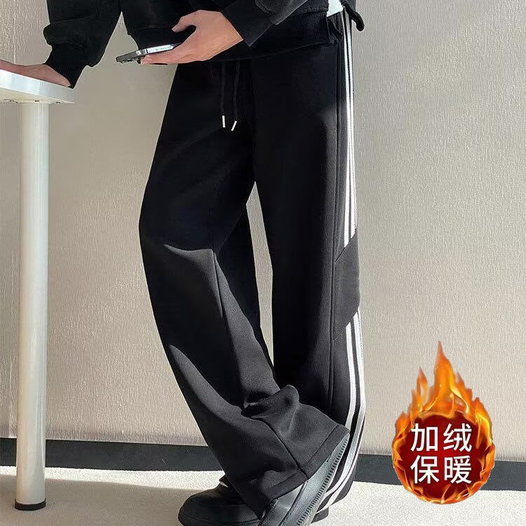 子青少年重磅加绒直筒卫裤 男春秋高街男生裤 三条杠运动休闲裤 美式