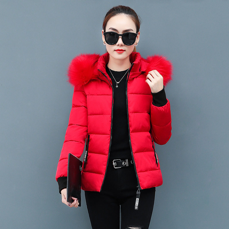 加厚大毛领小个子棉衣纯色 外套棉袄修身 外贸2025新短款 棉服女冬装