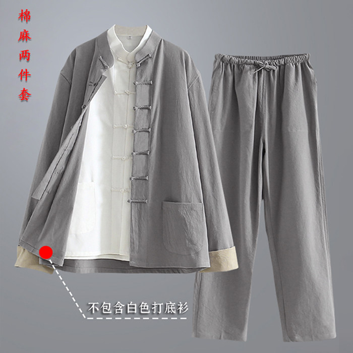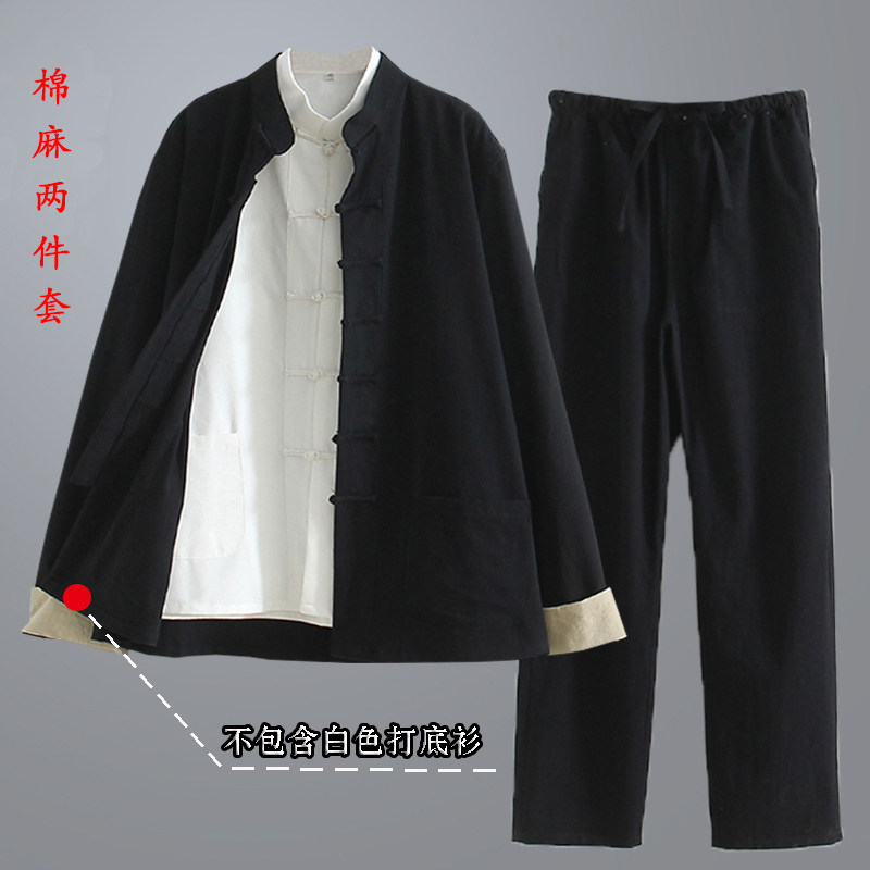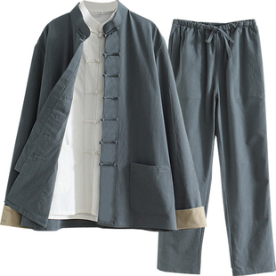 茶服男古风棉麻古装 唐装 男装 中式 两件套居士服中国风禅修服 男套装