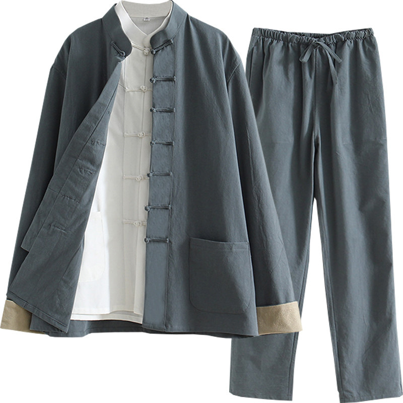 禅修居士汉服男女太极服 三件套亚麻长袖 春秋棉麻中式 盘扣国风唐装
