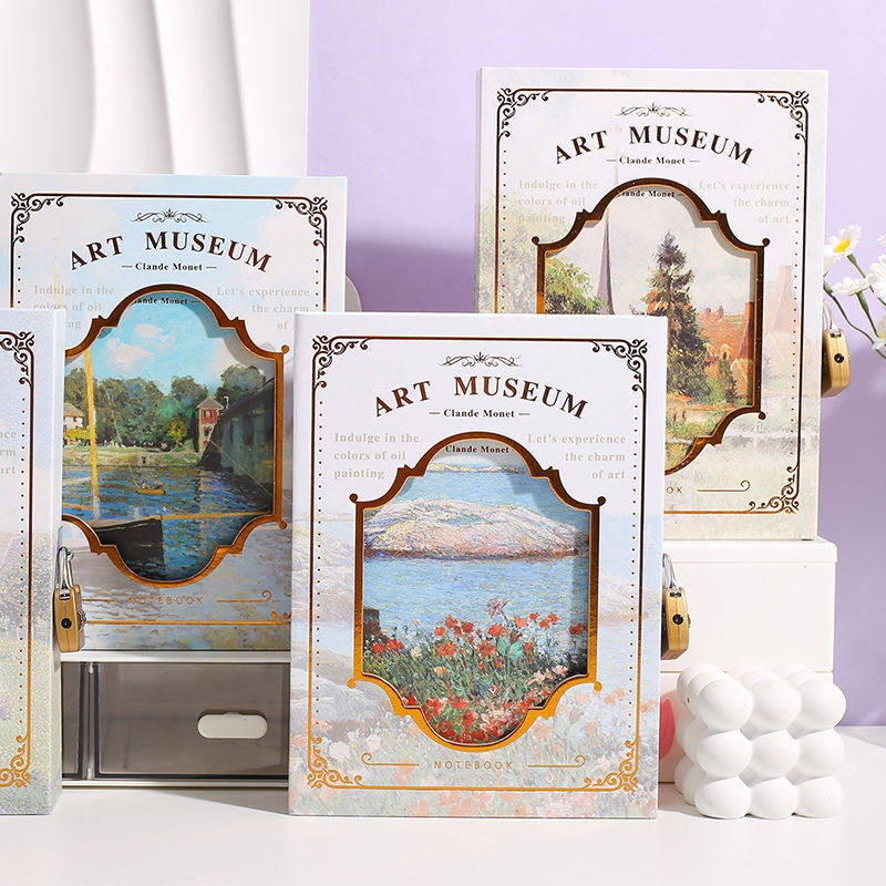 复古艺术密码 本学生带锁日记本女小清新手账本创意彩页插画笔记本