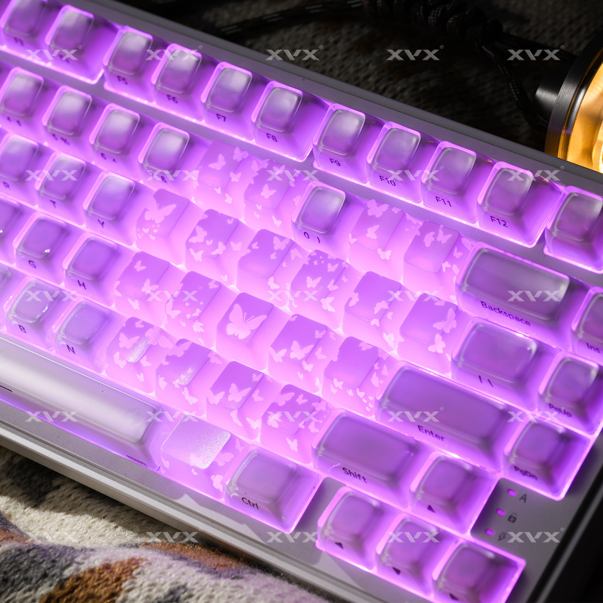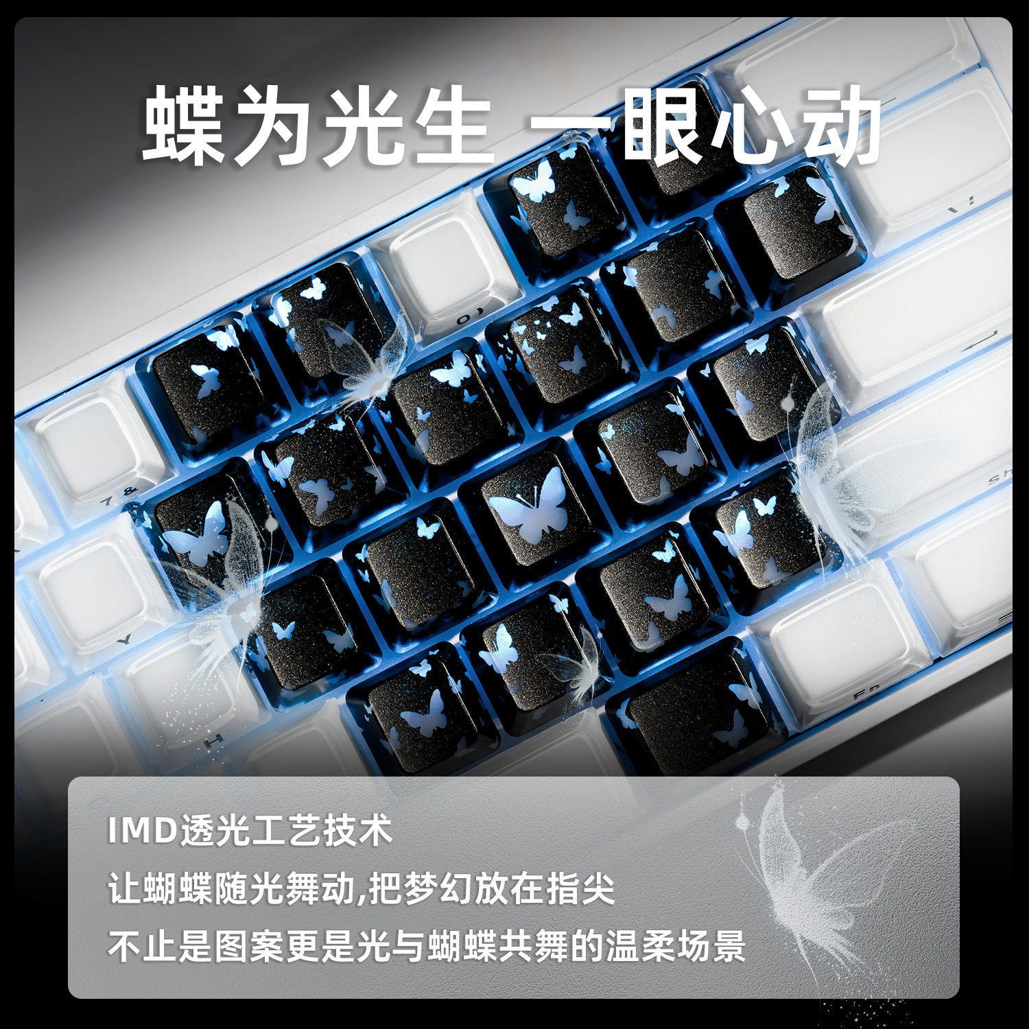 XVX 蝴蝶键帽黑色爱心增补图案透光IMD磁轴机械键盘键帽无刻ev63