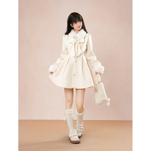 初秋祈愿 日系甜美保暖毛呢外套裙子蝴蝶结外套2025秋冬小个子女