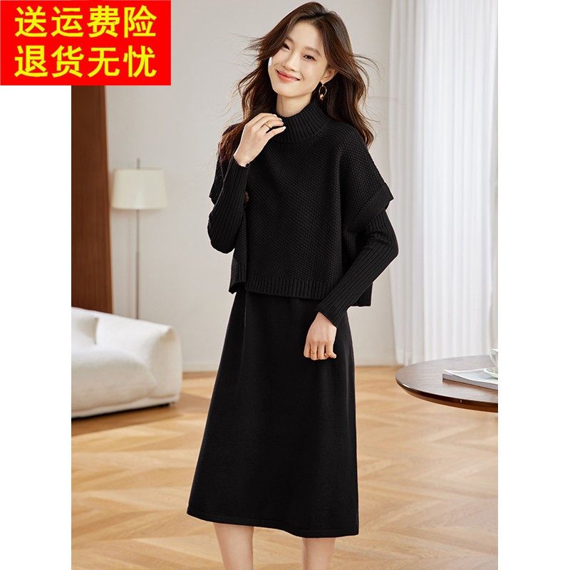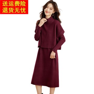 高端羊绒针织毛衣套装 羊毛背心两件式 中长版 女秋冬新款 裙子 洋装