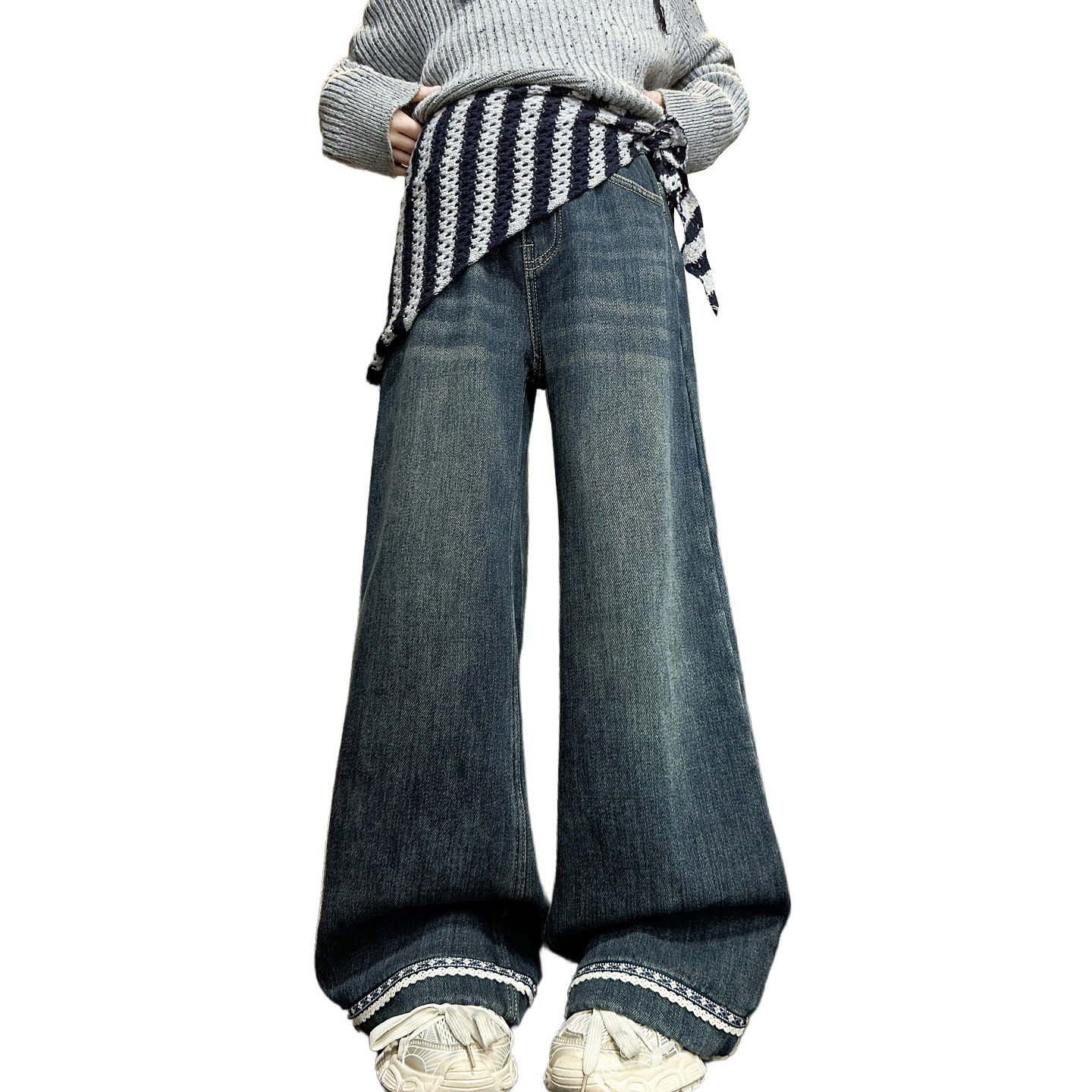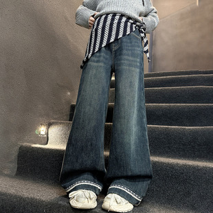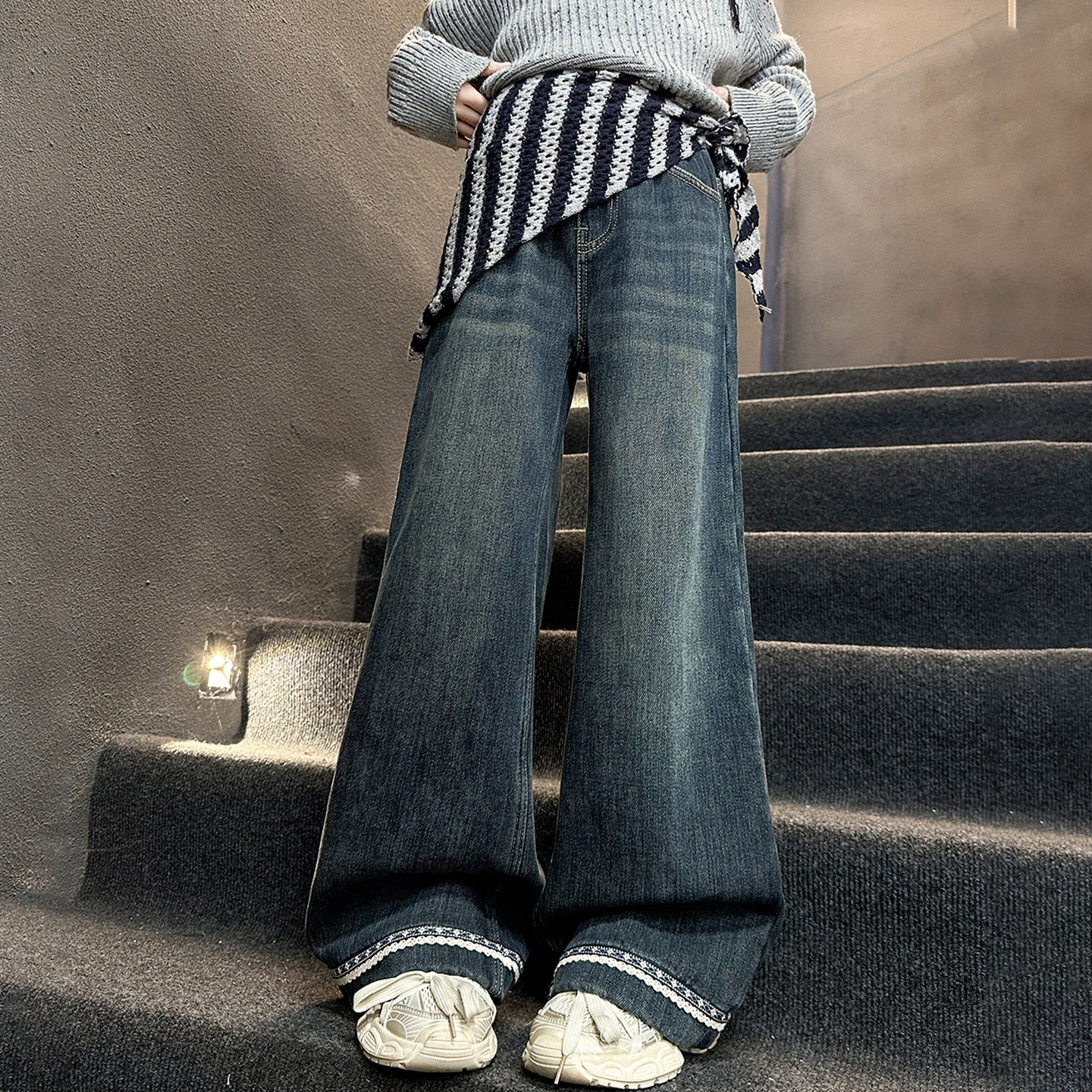 时尚 冬季 中大童阔腿裤 韩版 子 女童加绒裤 潮酷百搭牛仔裤 子2025新款