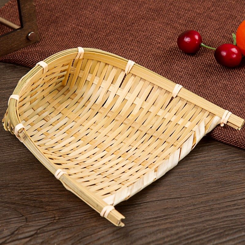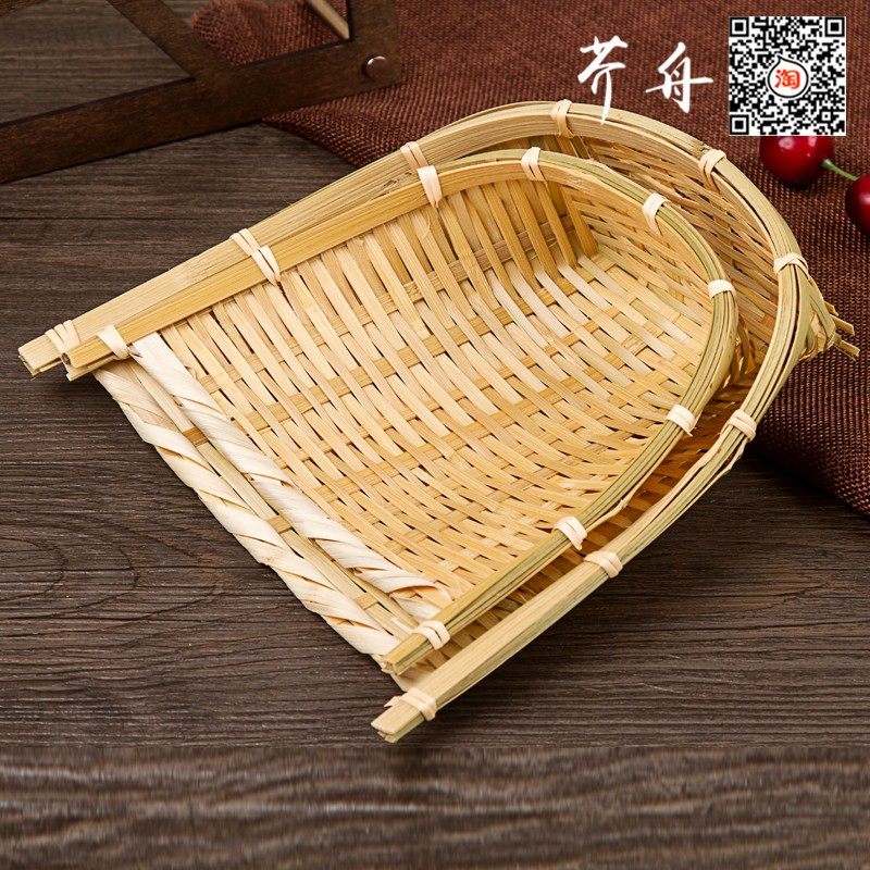 竹编筐小簸箕f筲箕撮箕托盘手工迷你藤编装 饰篮子炸物点心创意餐