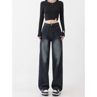 复古风高腰宽松直筒2026新款 爆款 牛仔裤 显瘦垂感长裤 潮 女春季 美式