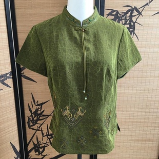 真丝孤品 中式 6123 立领盘扣刺绣上衣 衣长57 香云纱