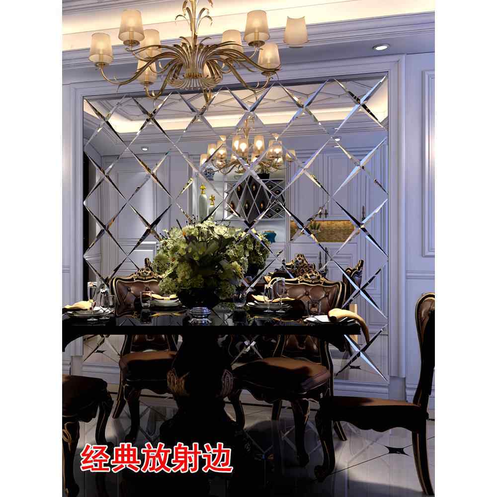 艺术玻璃拼镜背景墙边框造型玻璃墙茶镜菱形客厅电视饭厅镜面定制