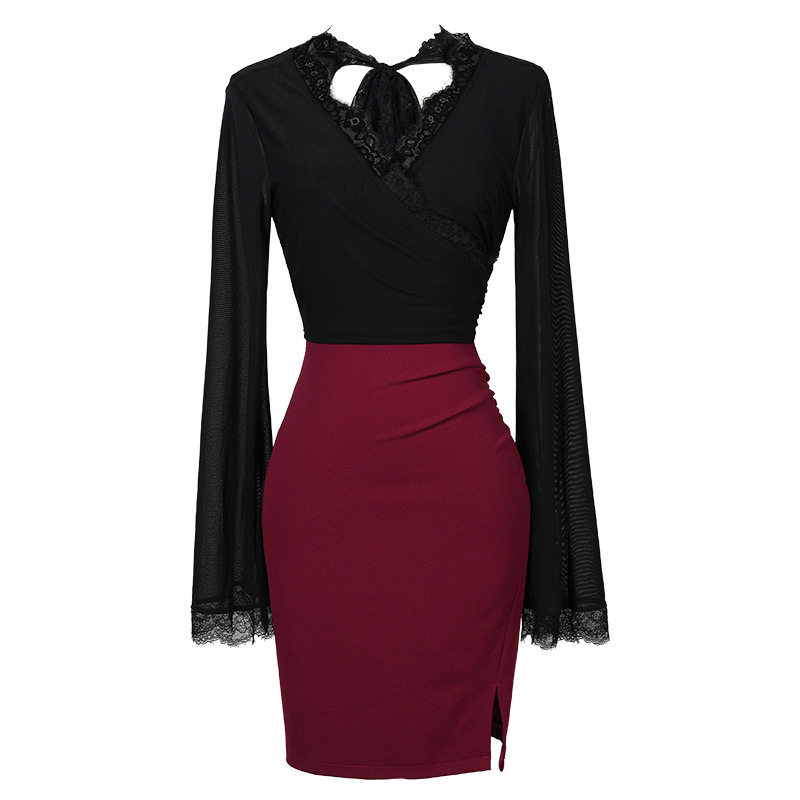 批发 包臀裙夜场女装 性感纯欲风时尚 深v辣妹气质薄纱透视喇叭长袖