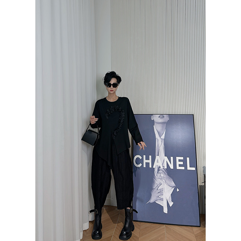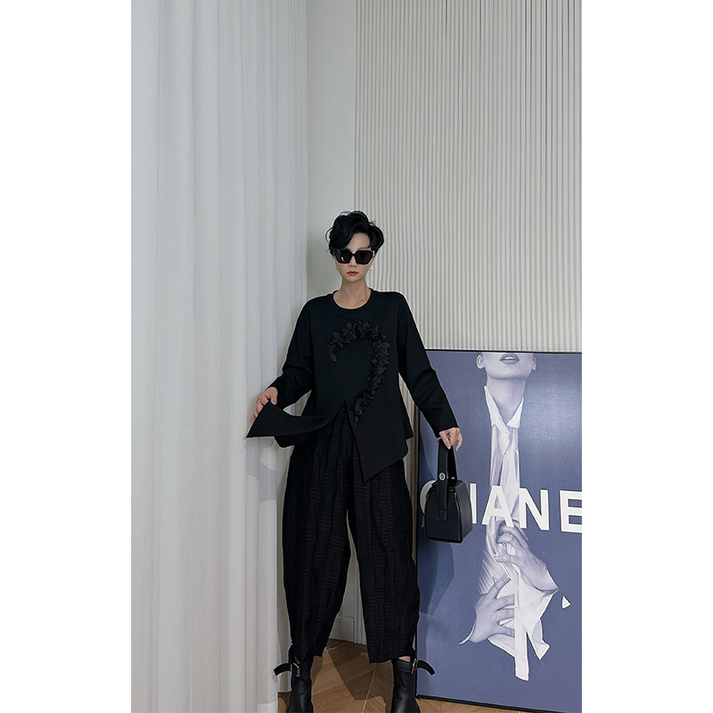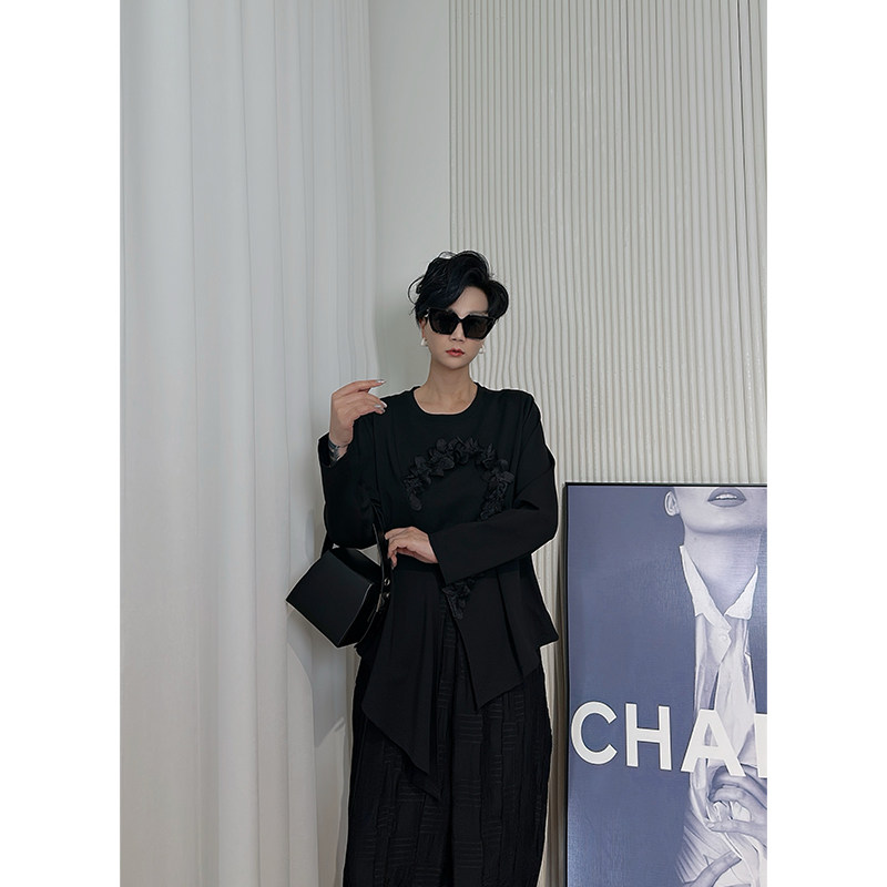 Dan 卫衣女 黑色立体花朵长袖