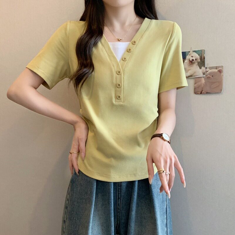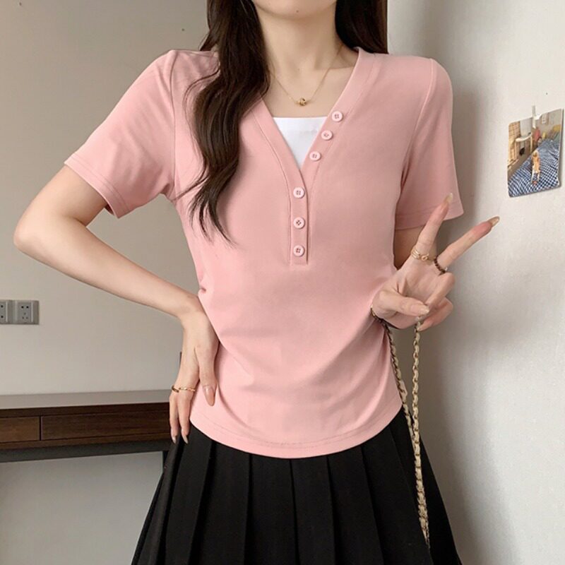 新款 大码 t恤女2026夏装 撞色假两件正肩短袖 胖mm显瘦减龄上衣 女装