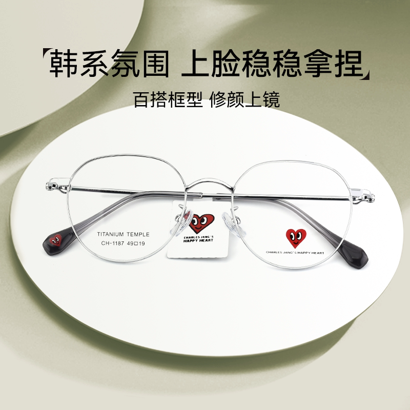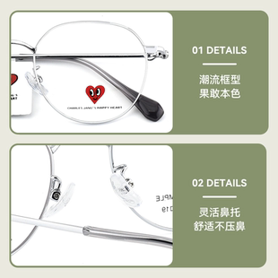 查尔斯桃心近视眼镜框26新款 清冷钛架椭圆形可配度数女素颜CH1187