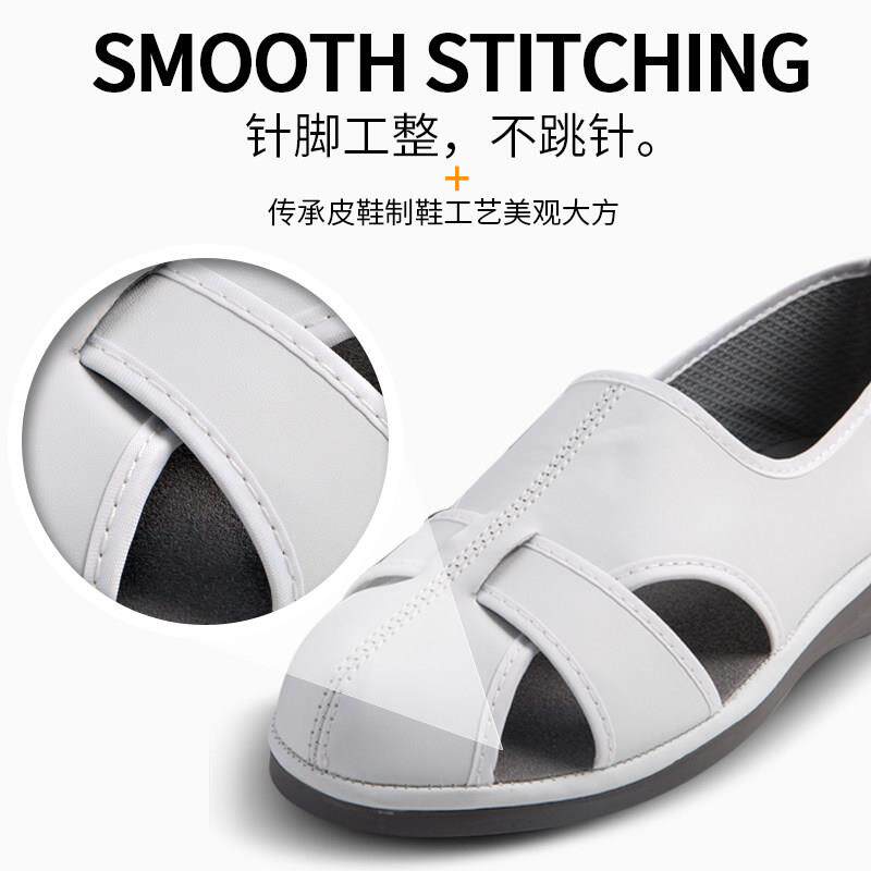 防静电拖鞋 PU底皮面四孔无菌实验室无尘车间日企京东方白色凉鞋