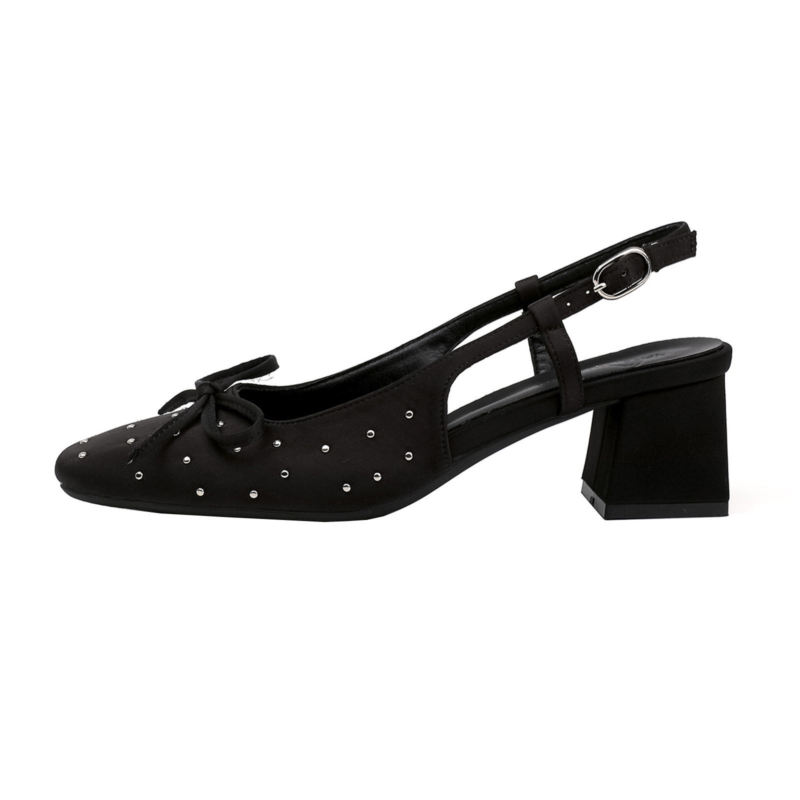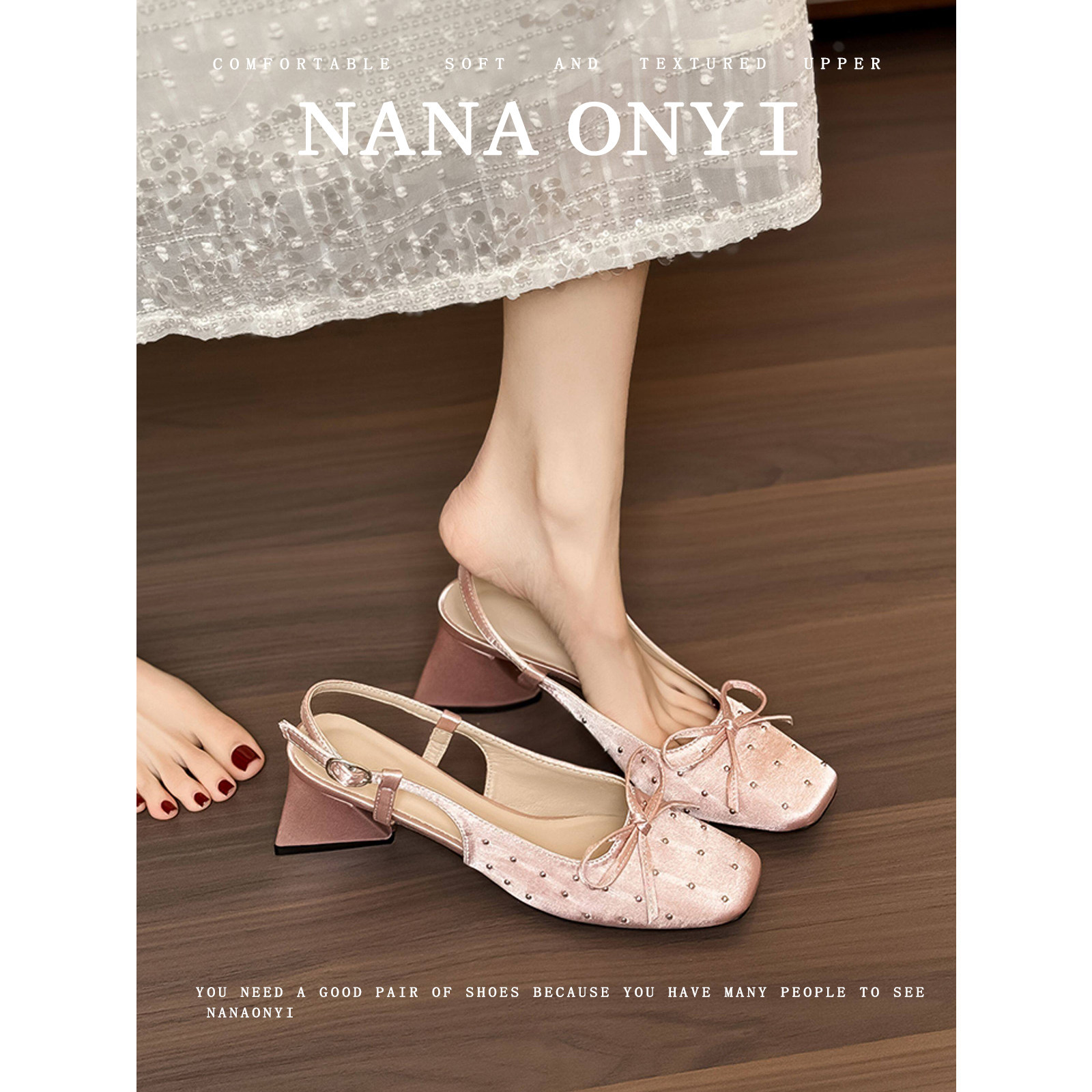 粗跟高跟鞋 辣辣」羊皮版 蝴蝶结不累脚单鞋 女夏2026新款 包头凉鞋