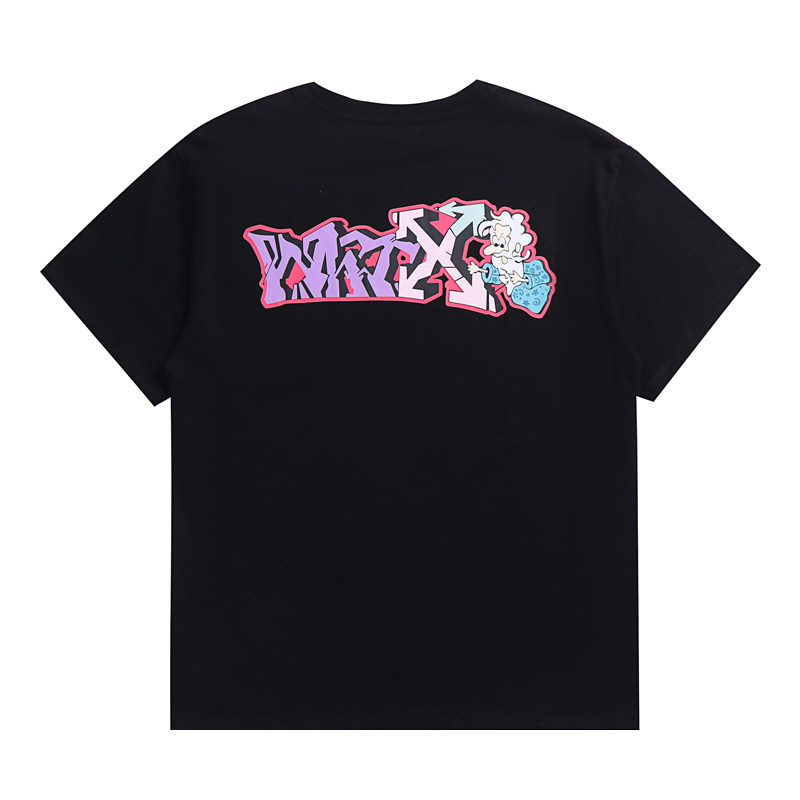 潮牌ins 宽松套头T恤男女情侣款 OFF WILWHIOS文字箭头印花圆领短袖