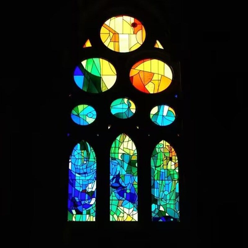 蒂凡尼珐琅彩艺术玻璃屏风隔断玄关入户彩绘教堂复古人工立线花窗