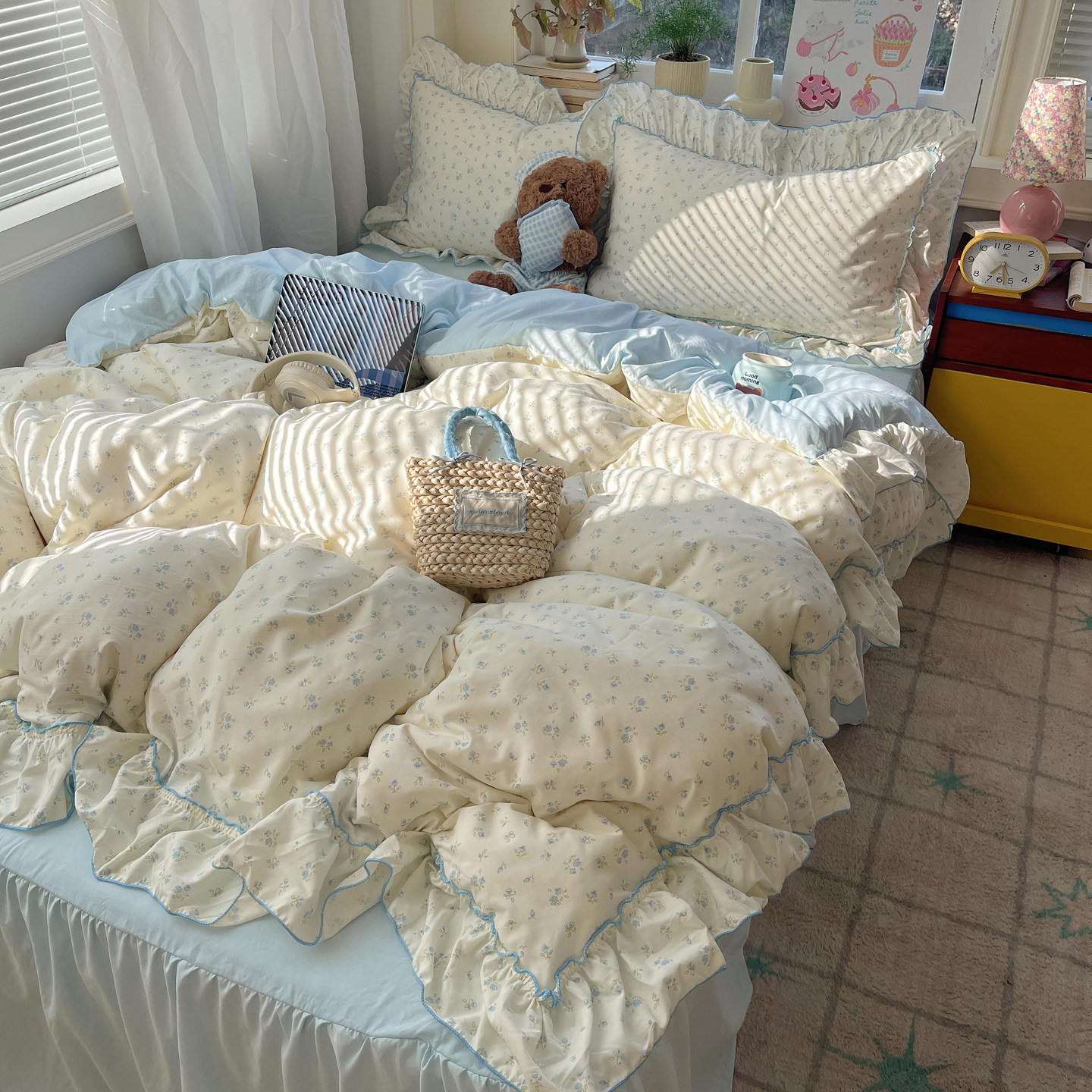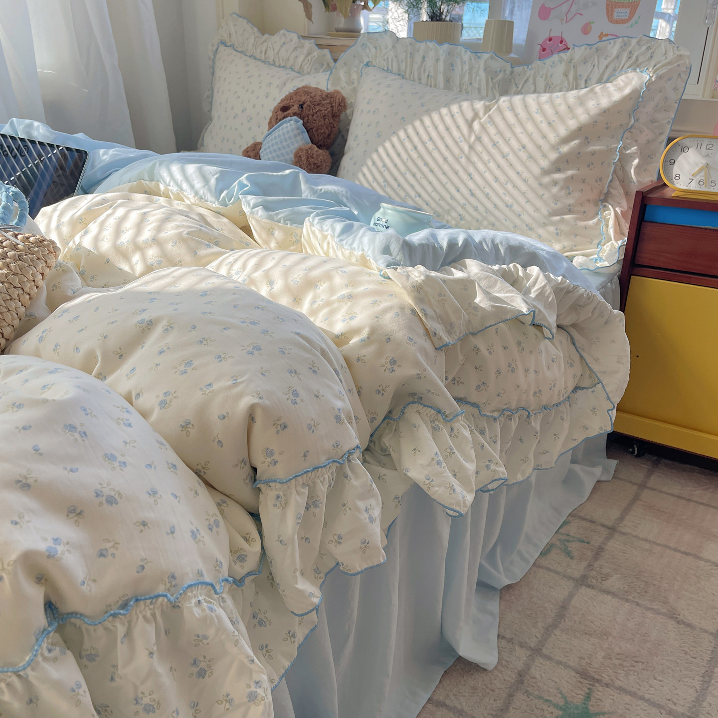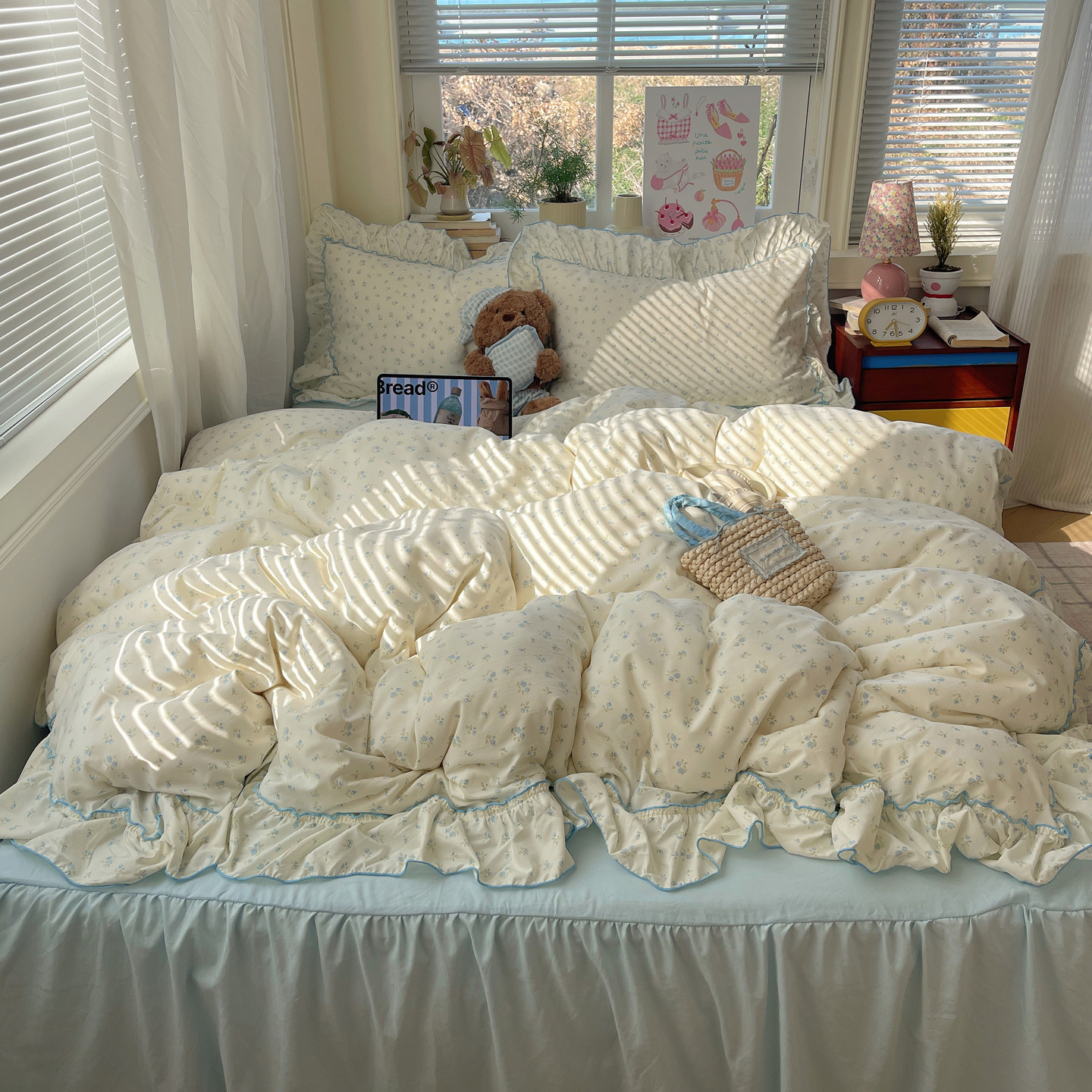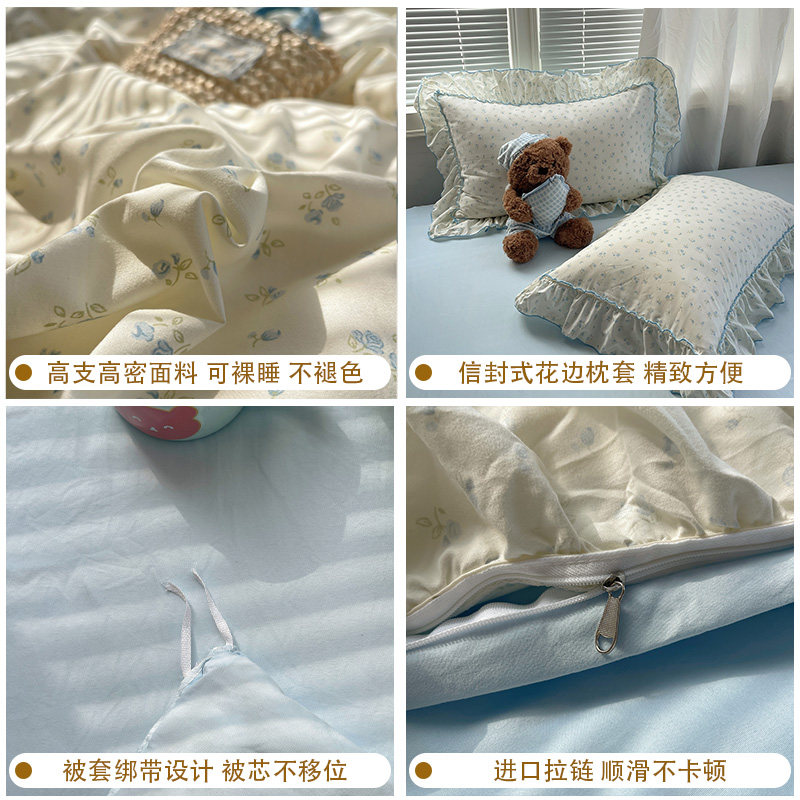 A类小清新碎花花边床品四件套水洗棉2026新款 床裙被套宿舍三件套4
