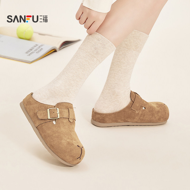 休闲女鞋 三福女凉拖鞋 半拖时尚 玩趣菁英刺绣勃肯鞋 852653 春季