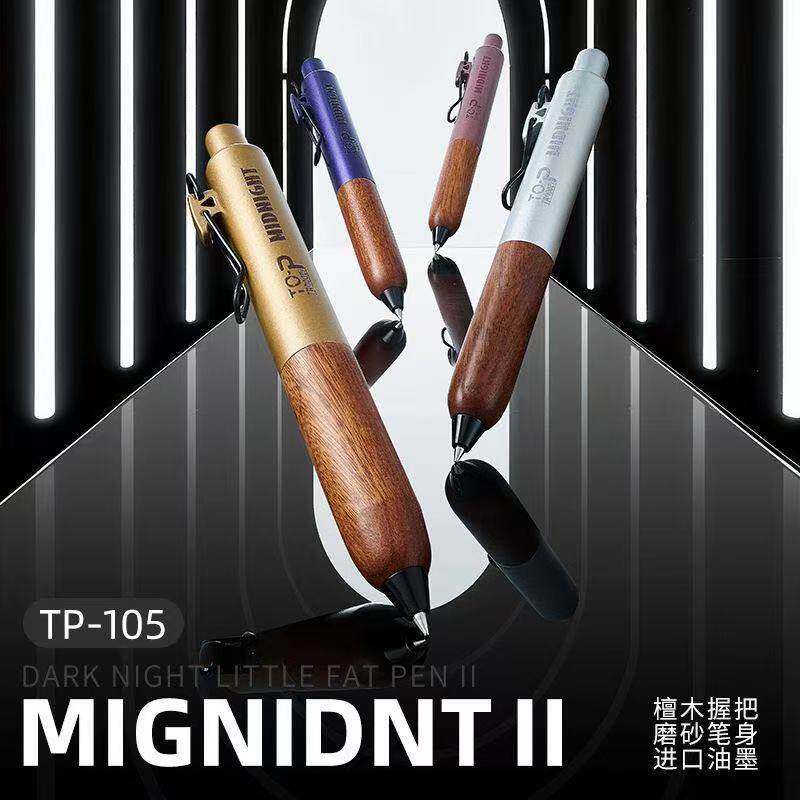 塔诺塞暗夜系第二弹中性笔小巧胖胖笔潮流复古风檀木笔握进口笔芯0.5mm浓墨按动水笔便携口袋笔 新品