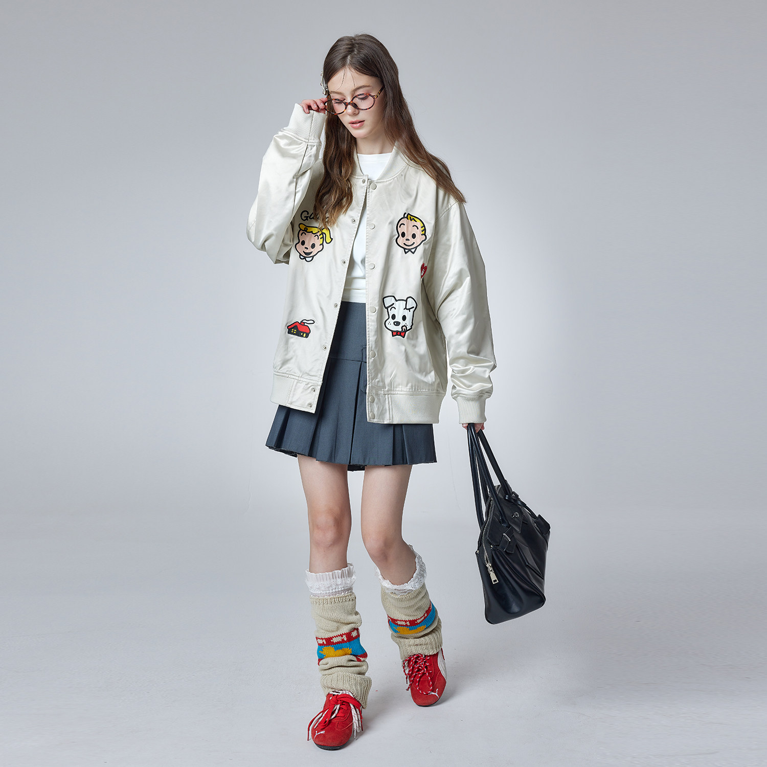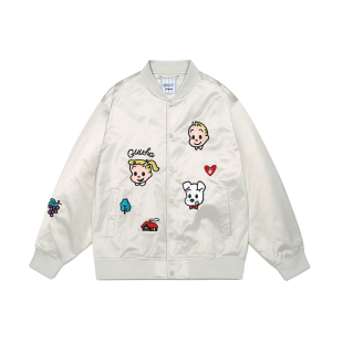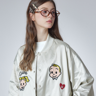 GUUKA&原田治联名日系横须贺夹克棒球服女款 小狗刺绣落肩外套宽松