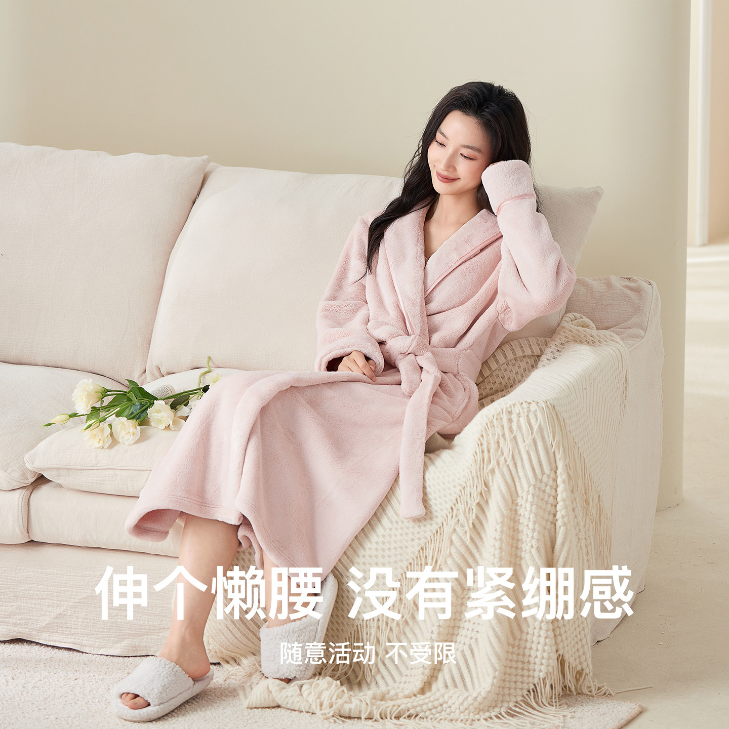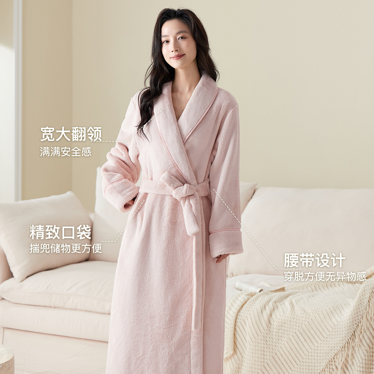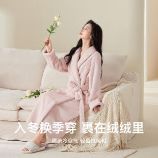 睡袍女秋冬款 固定收腰显瘦家居服睡衣 牛奶绒加厚法兰绒浴袍长款