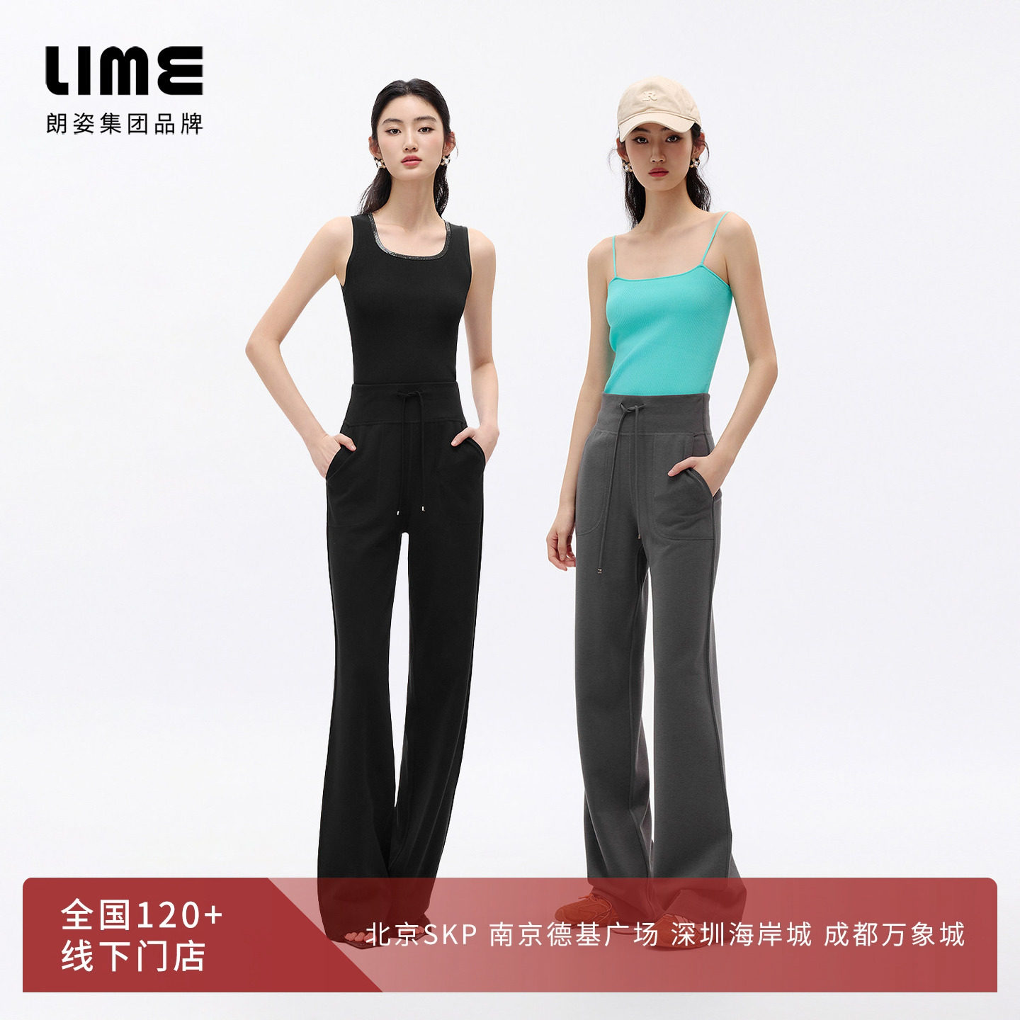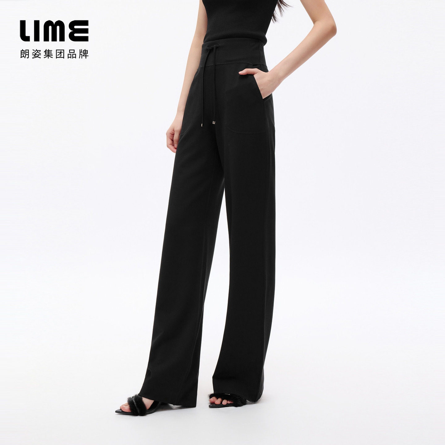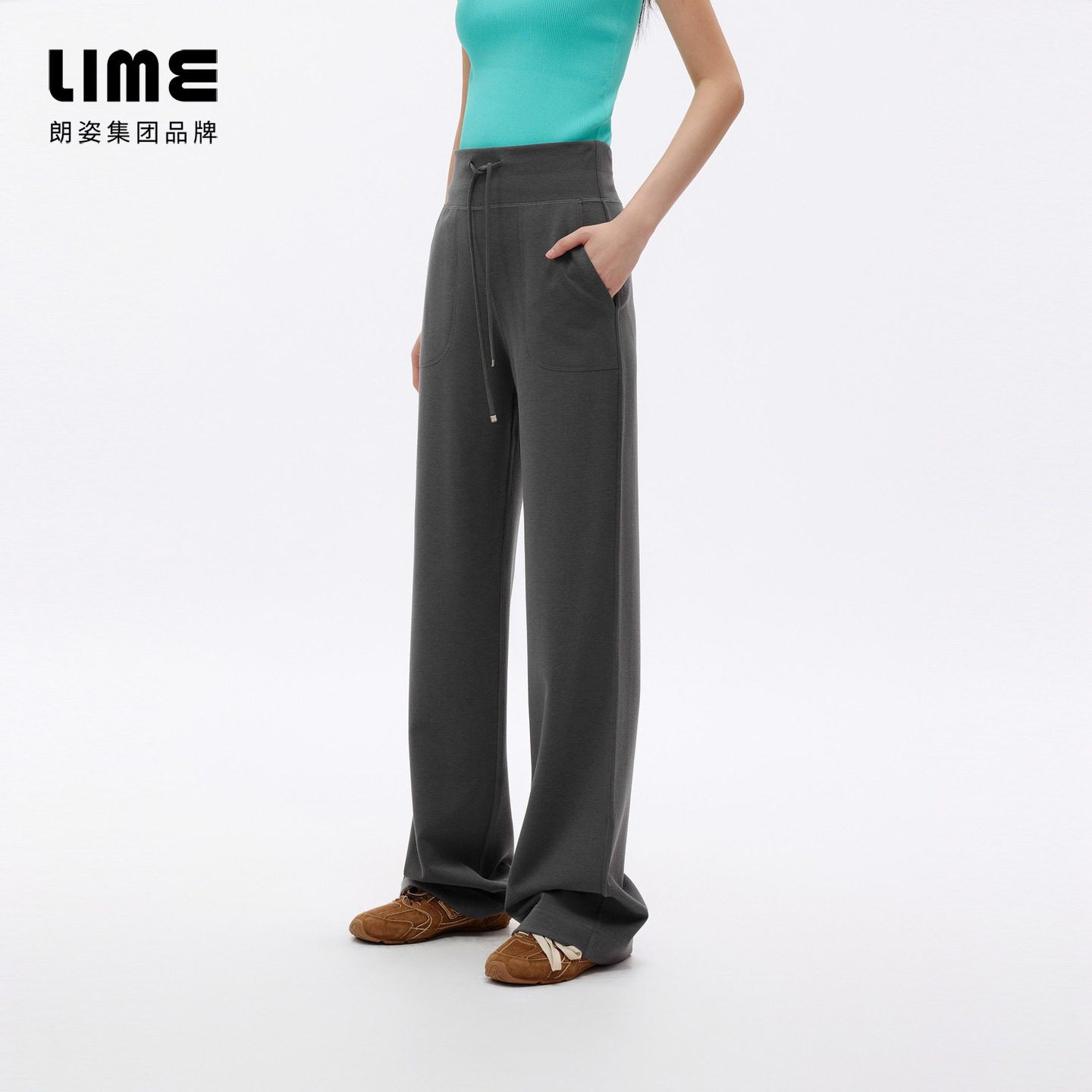 慵懒风百搭26年春新款 朗姿 LIME莱茵高腰抽绳高弹阔腿直筒休闲裤