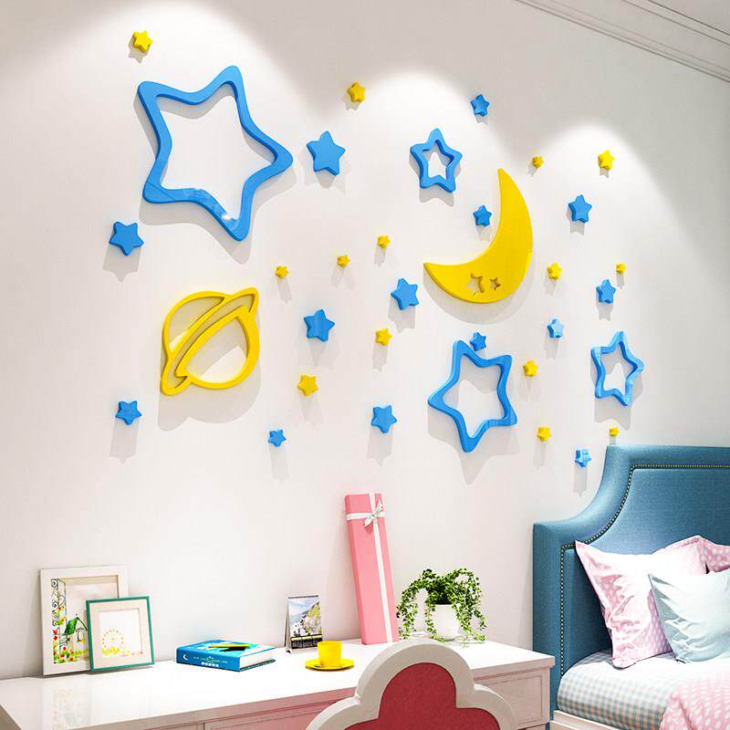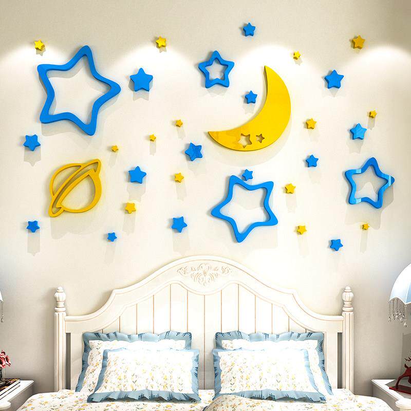 卡通3d立体壁贴画星星月亮男孩儿童房间装 饰卧室床头背景墙面布置